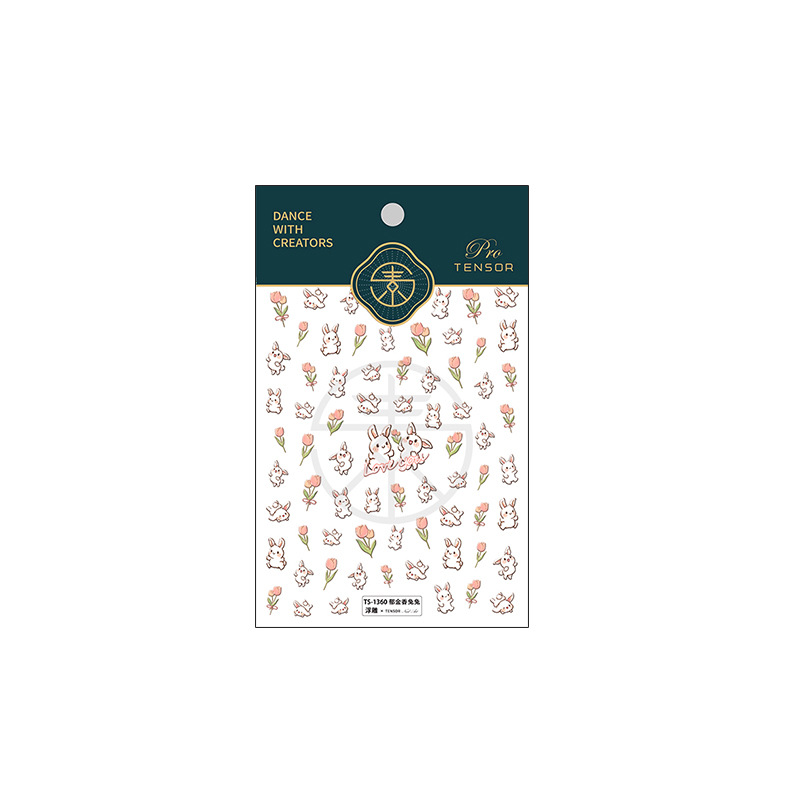 새로운 기술 일본식 얇은 터프 네일 스티커 프로 프로스트 얇은 접착제 네일 스티커 TS1359 튤립 토끼