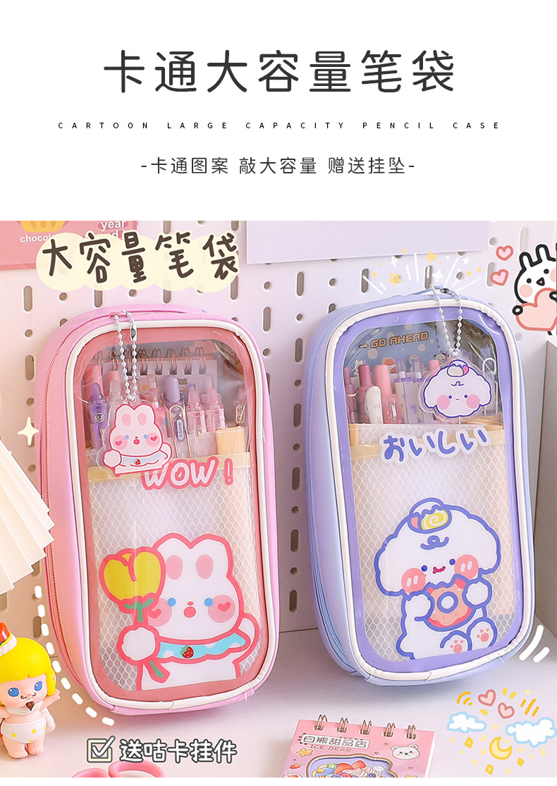오프닝 시즌 대용량 학생 필통 이우 문구 투명 귀여운 소녀 창작 간단 연필 문구 상자스토어 가기
