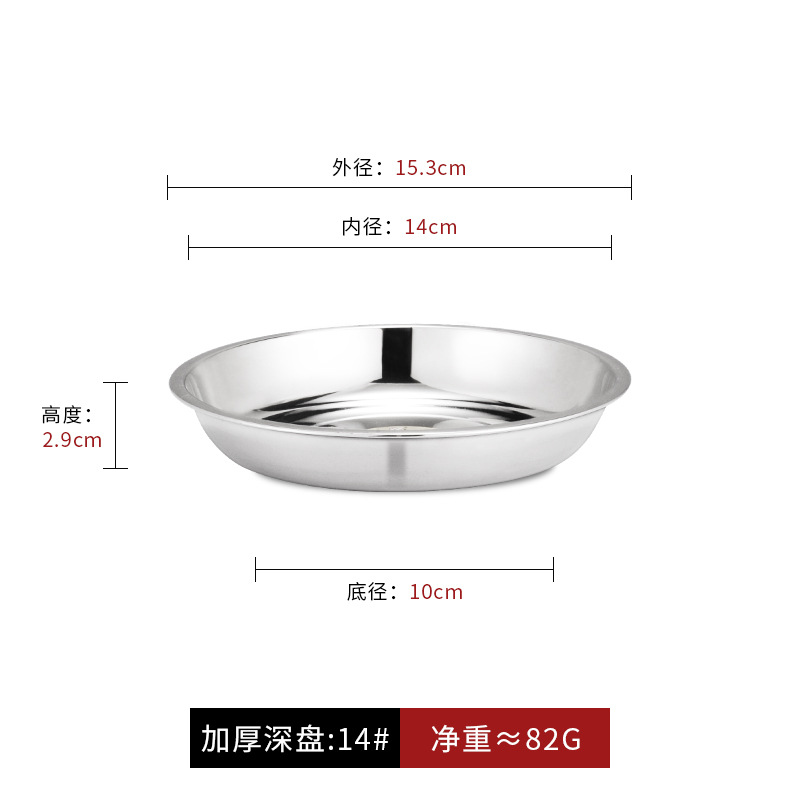 제조업체 도매 접시 스테인레스 스틸 두꺼운 주방 학교 식당 접시 접시 조미료 접시 원형 접시 가정용 식사 접시