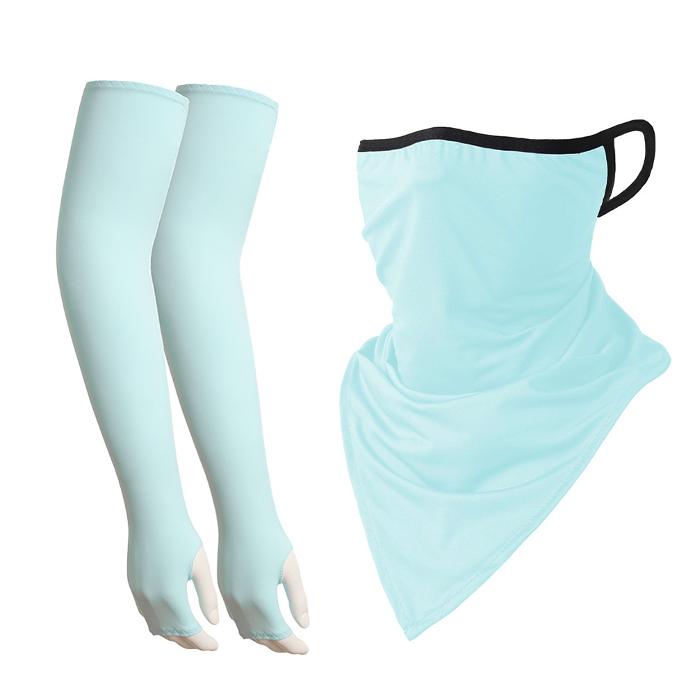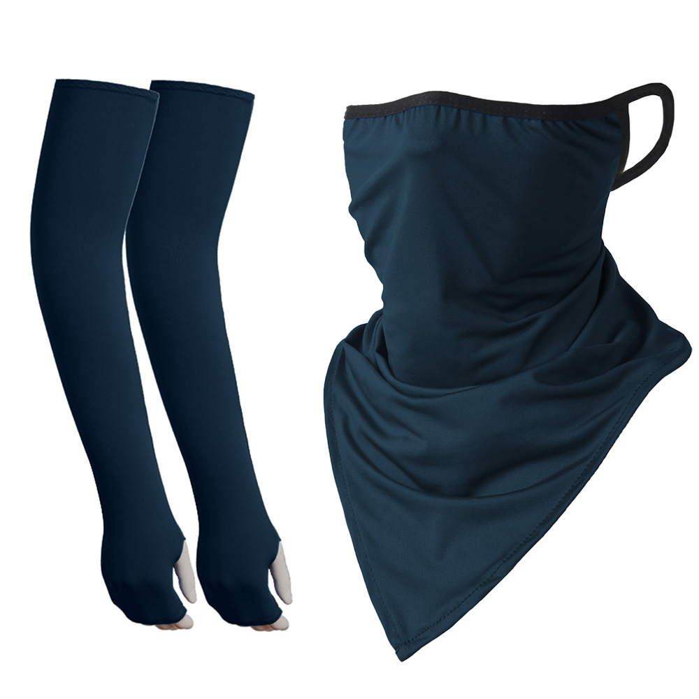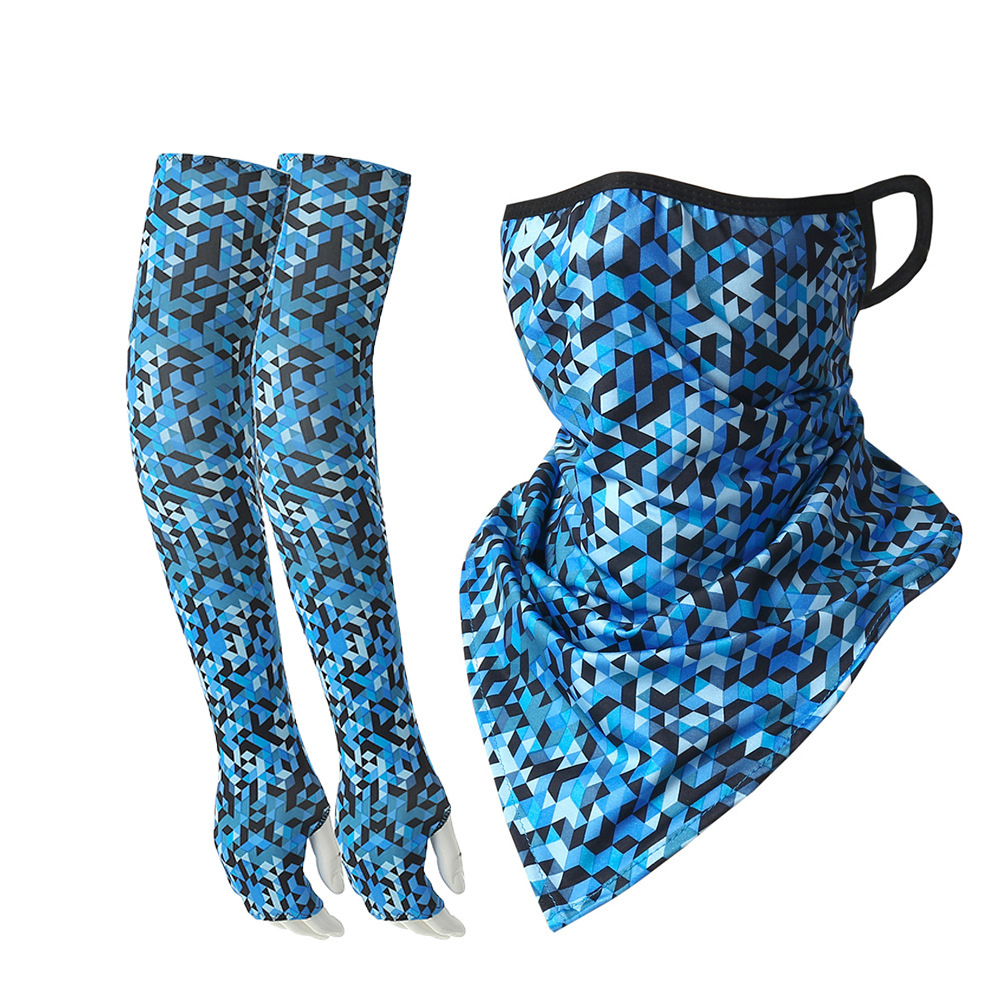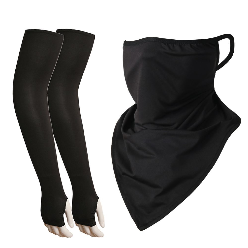 크로스 보더 아마존 아이스 실크 핑거 슬리브 여름 자외선 차단제 귀 걸이 삼각형 수건 야외 사이클링 스포츠 조합 세트