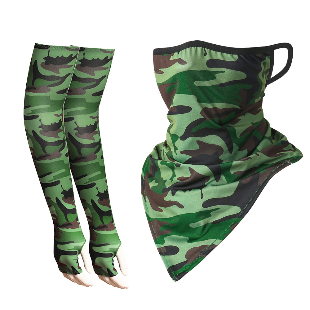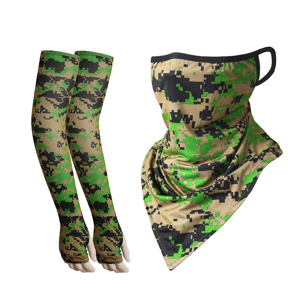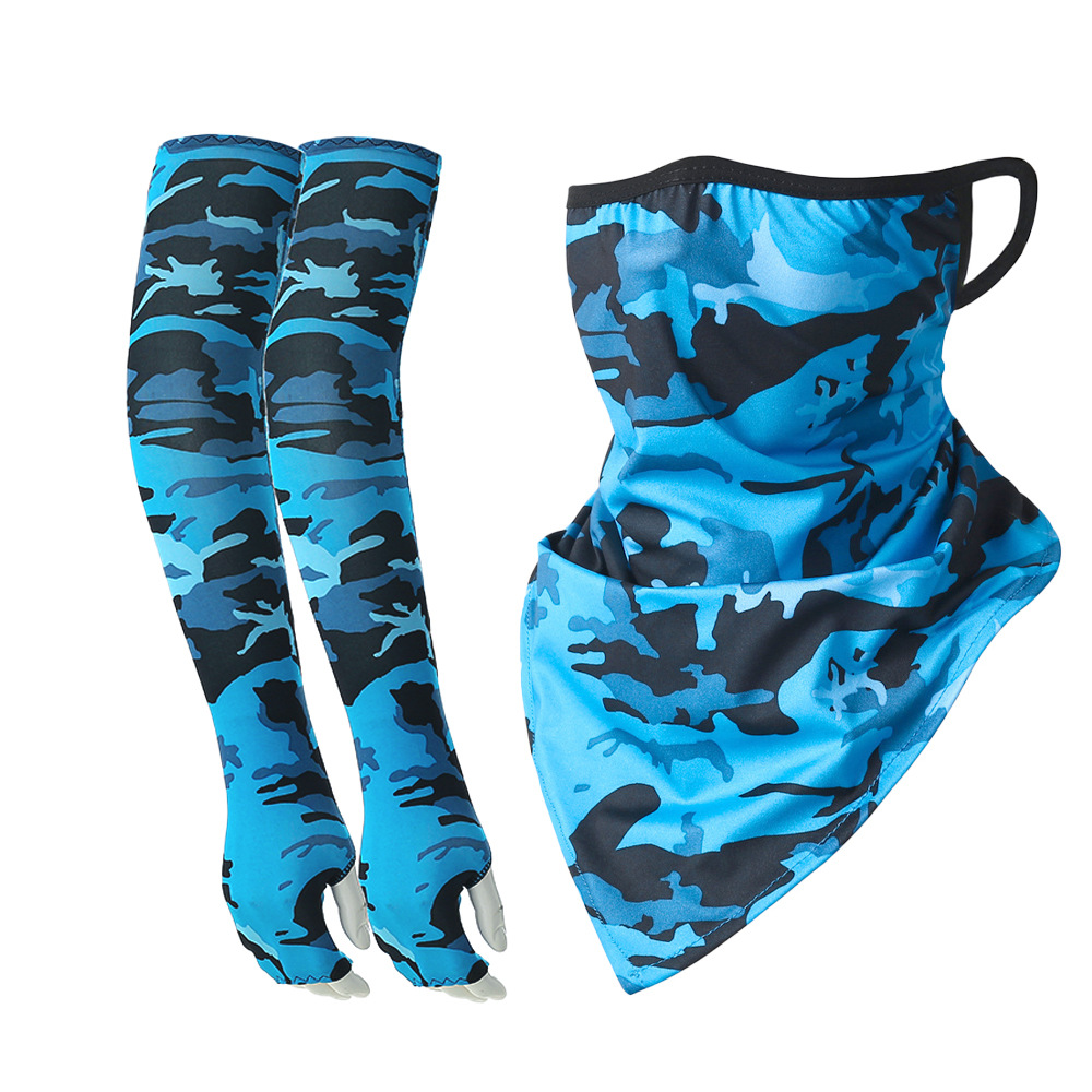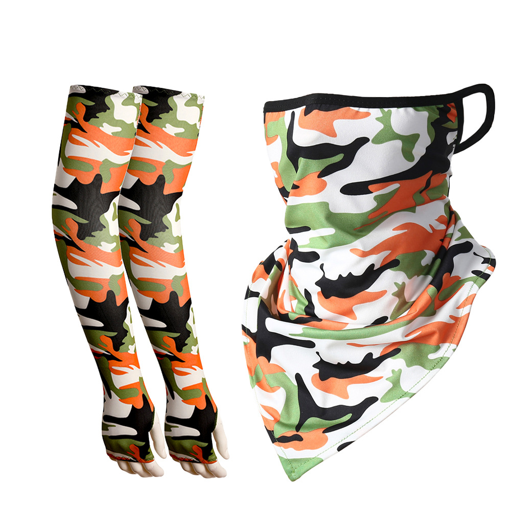 크로스 보더 아마존 아이스 실크 핑거 슬리브 여름 자외선 차단제 귀 걸이 삼각형 수건 야외 사이클링 스포츠 조합 세트