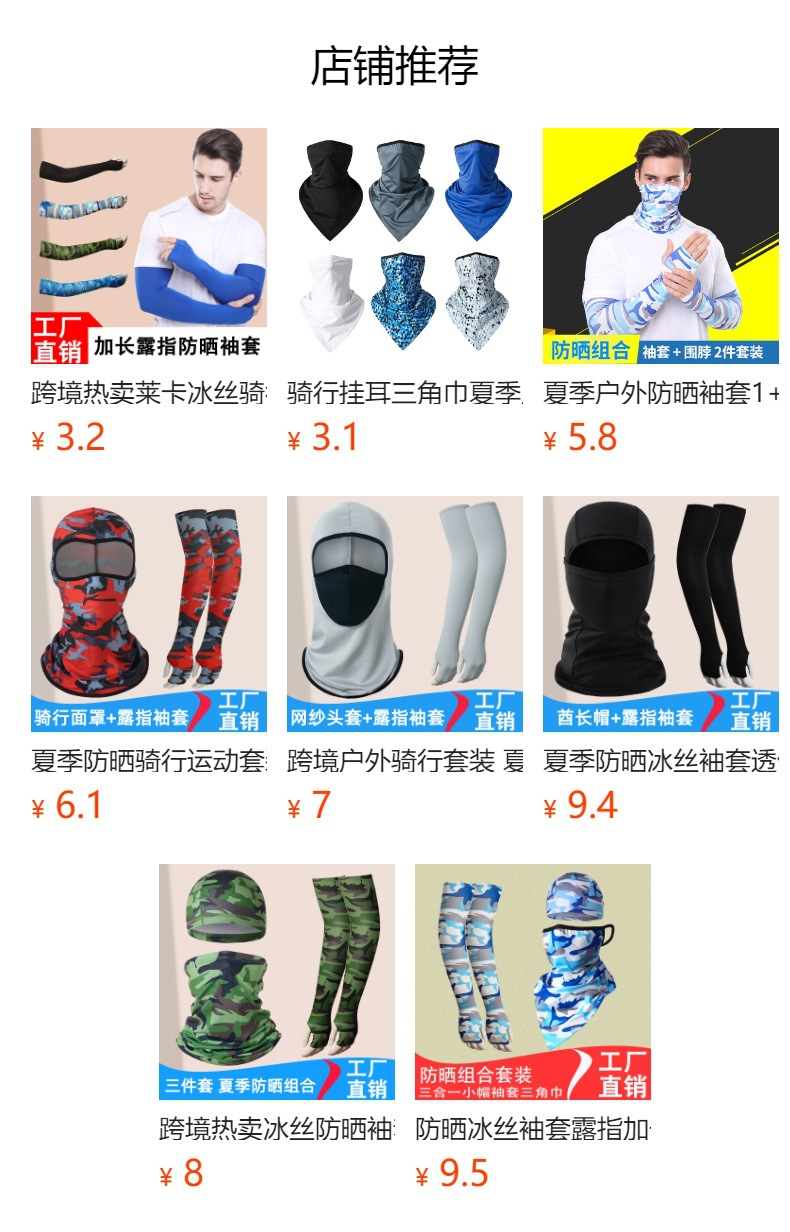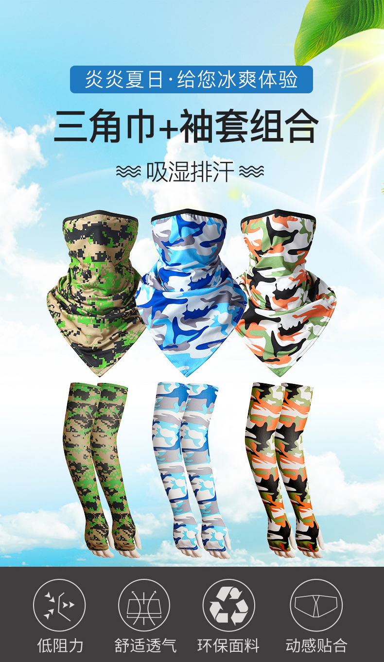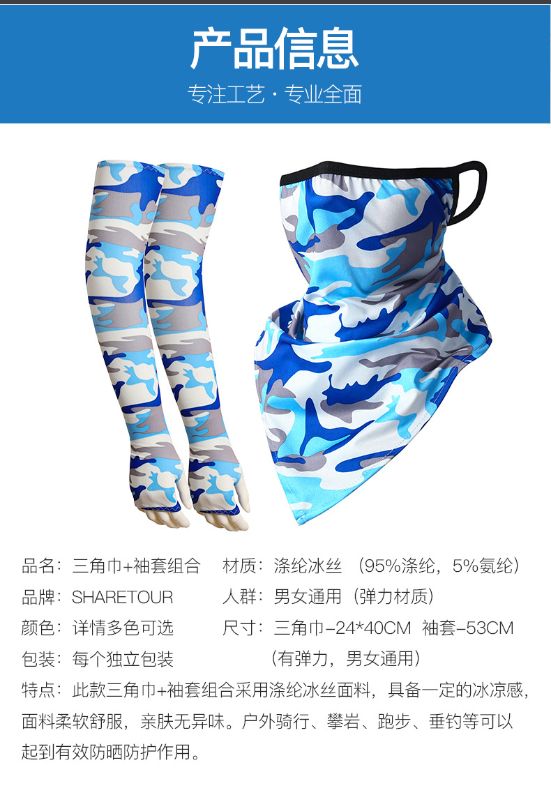 크로스 보더 아마존 아이스 실크 핑거 슬리브 여름 자외선 차단제 귀 걸이 삼각형 수건 야외 사이클링 스포츠 조합 세트스토어 가기