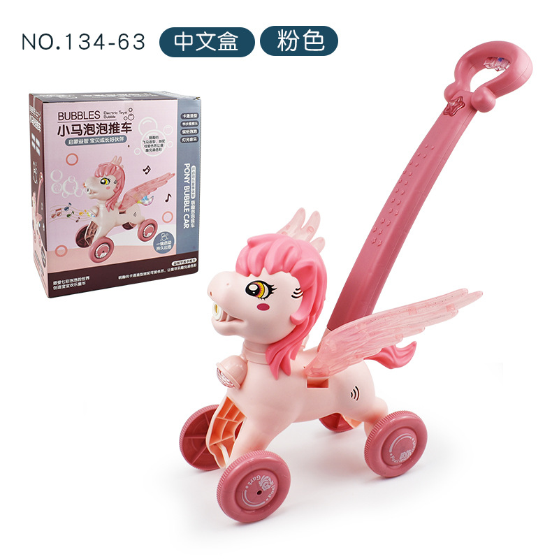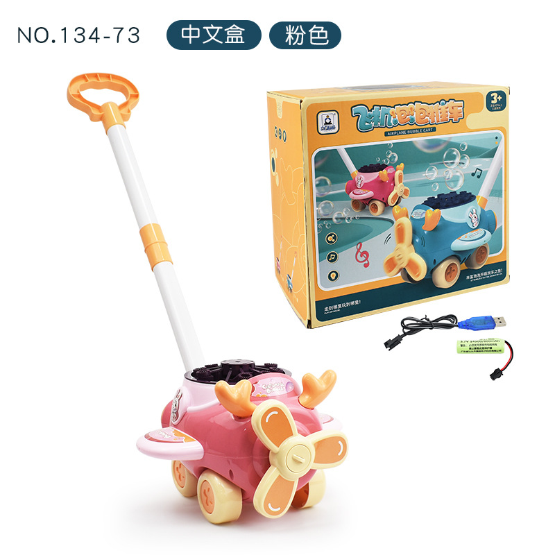 抖音新款儿童手推泡泡机飞机飞马萌鸭火车全自动出泡电动声光玩具