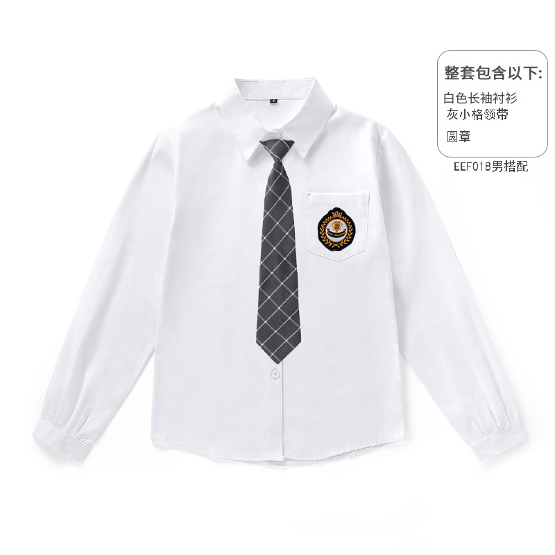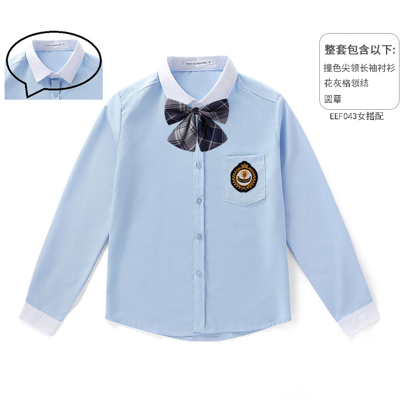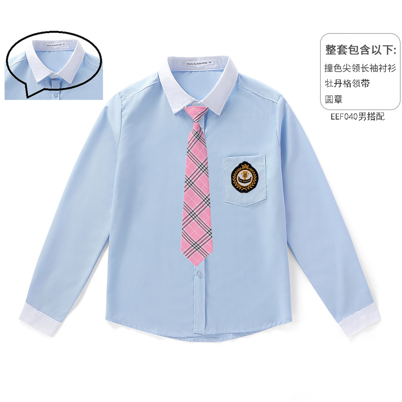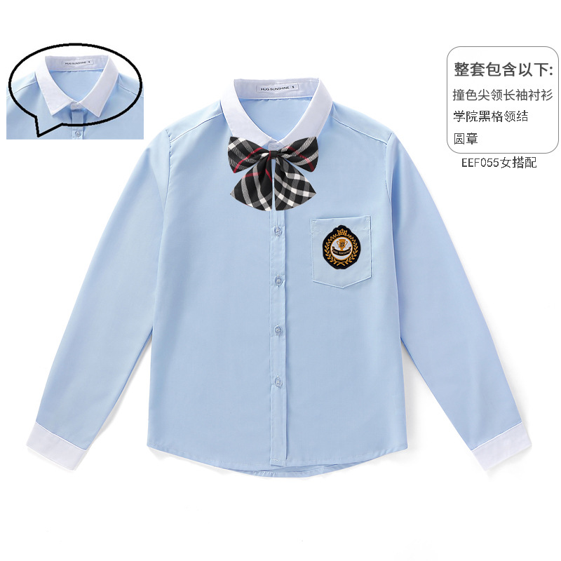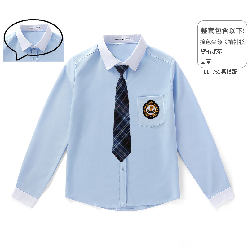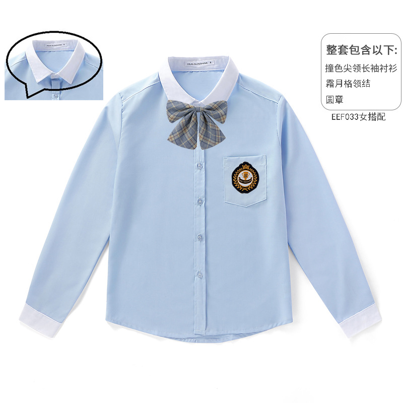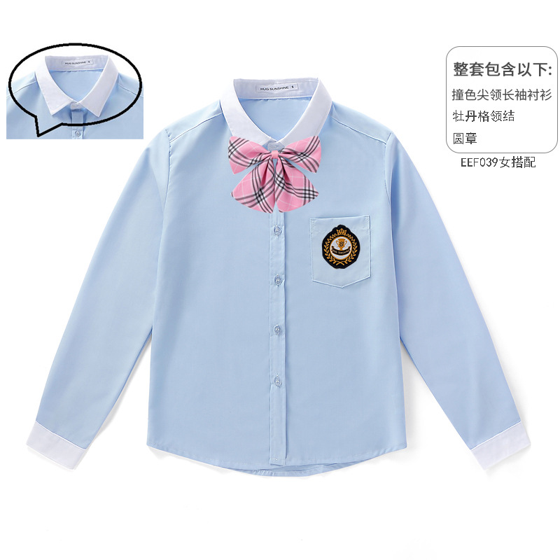 XS-5XL 재고 세대 머리 남자와 여자의 커플 코트 긴 소매 셔츠 블루와 화이트 단색 클래스 캠퍼스 의식 작업 유니폼
