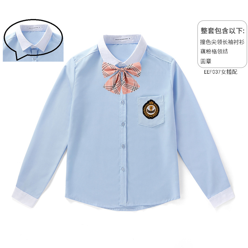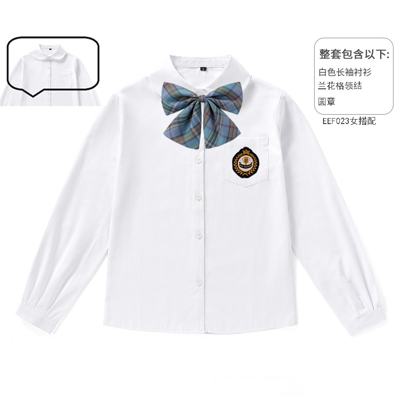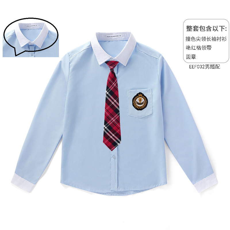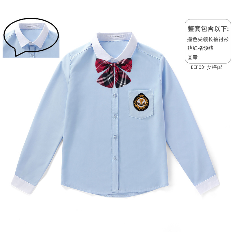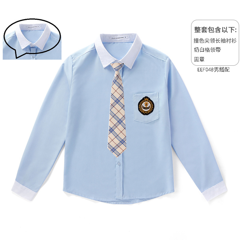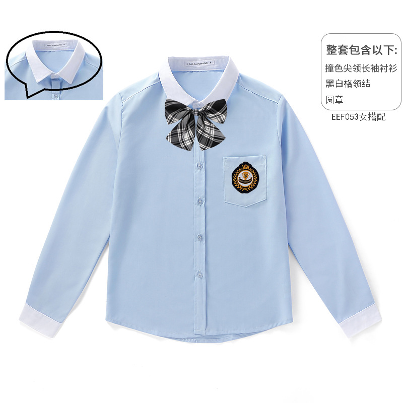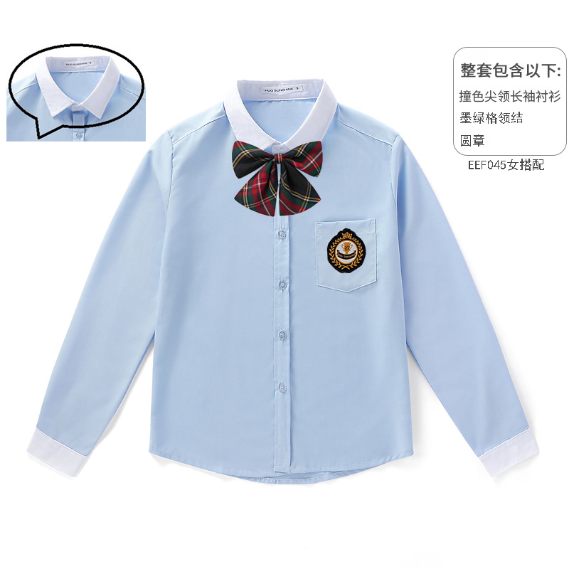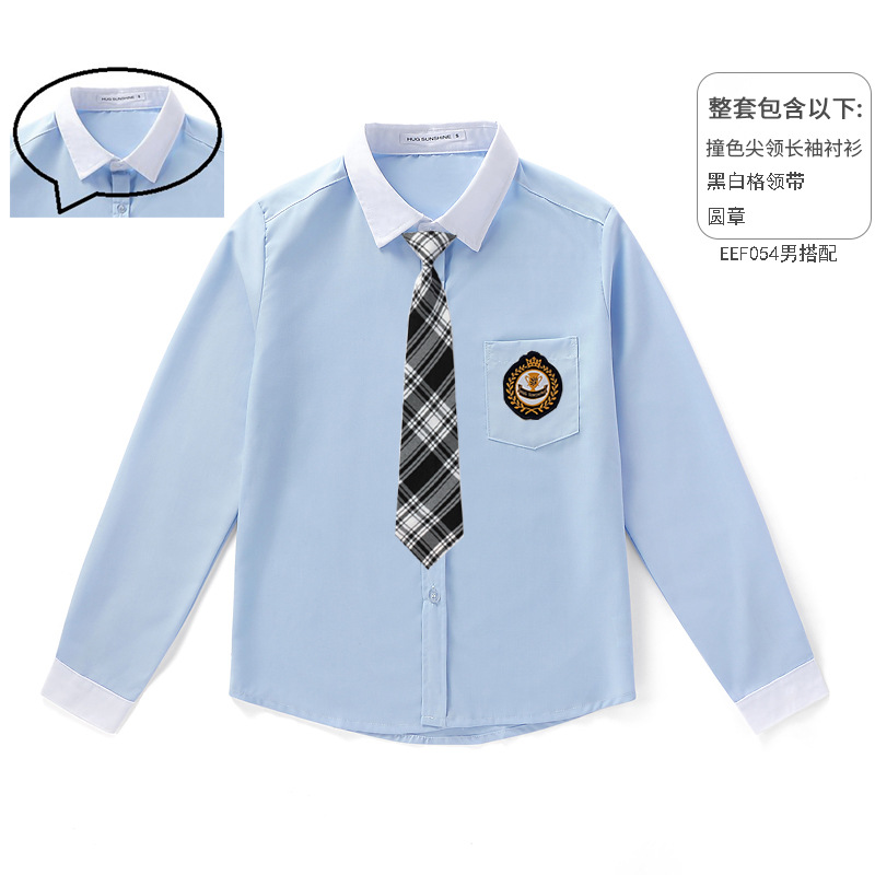 XS-5XL 재고 세대 머리 남자와 여자의 커플 코트 긴 소매 셔츠 블루와 화이트 단색 클래스 캠퍼스 의식 작업 유니폼