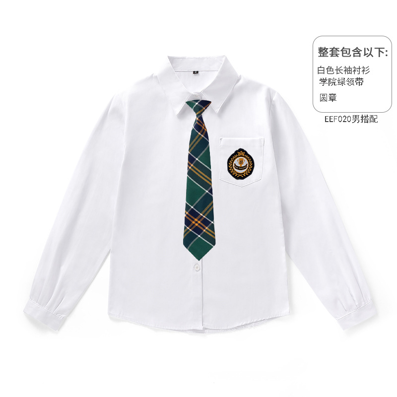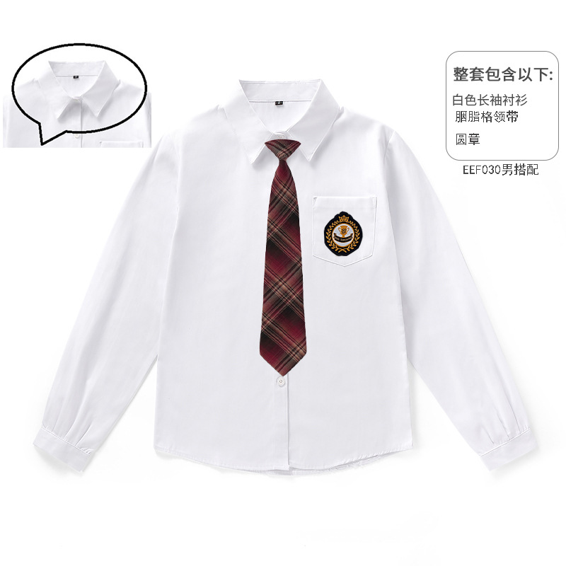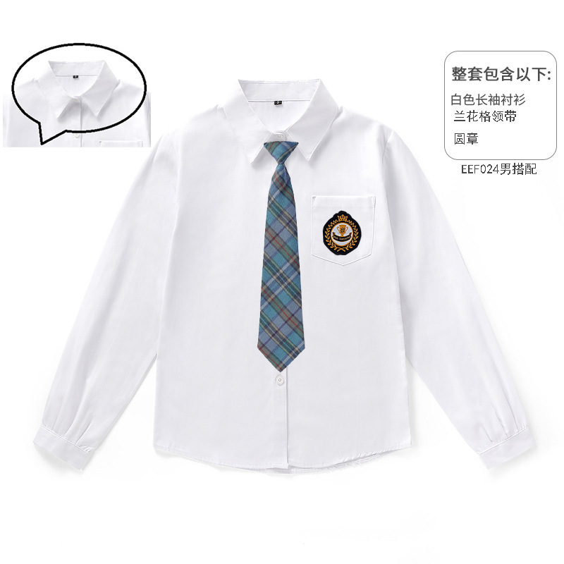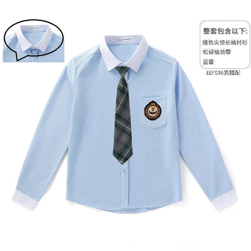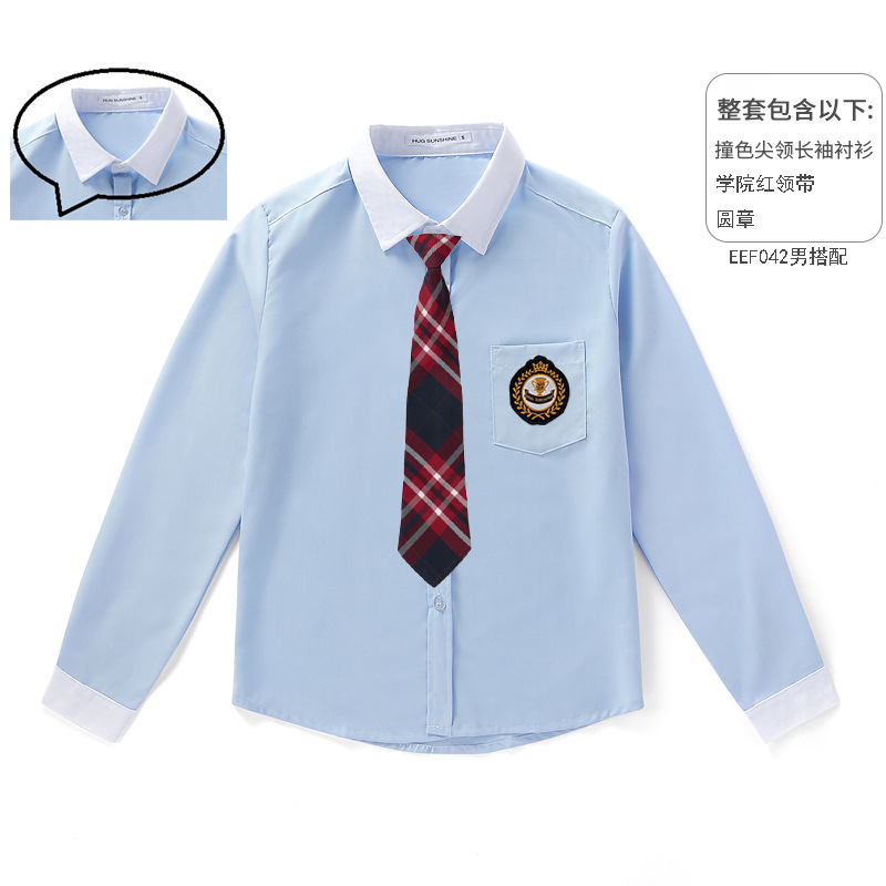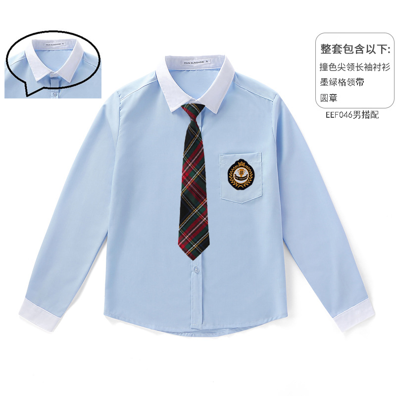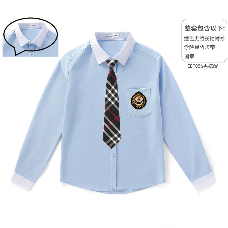 XS-5XL 재고 세대 머리 남자와 여자의 커플 코트 긴 소매 셔츠 블루와 화이트 단색 클래스 캠퍼스 의식 작업 유니폼