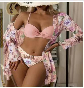 2023 새로운 유럽 및 미국 스플릿 수영복 여성 패션 쓰리 피스 비키니 크로스 보더 메쉬 대외 무역 수영복 비키니스토어 가기