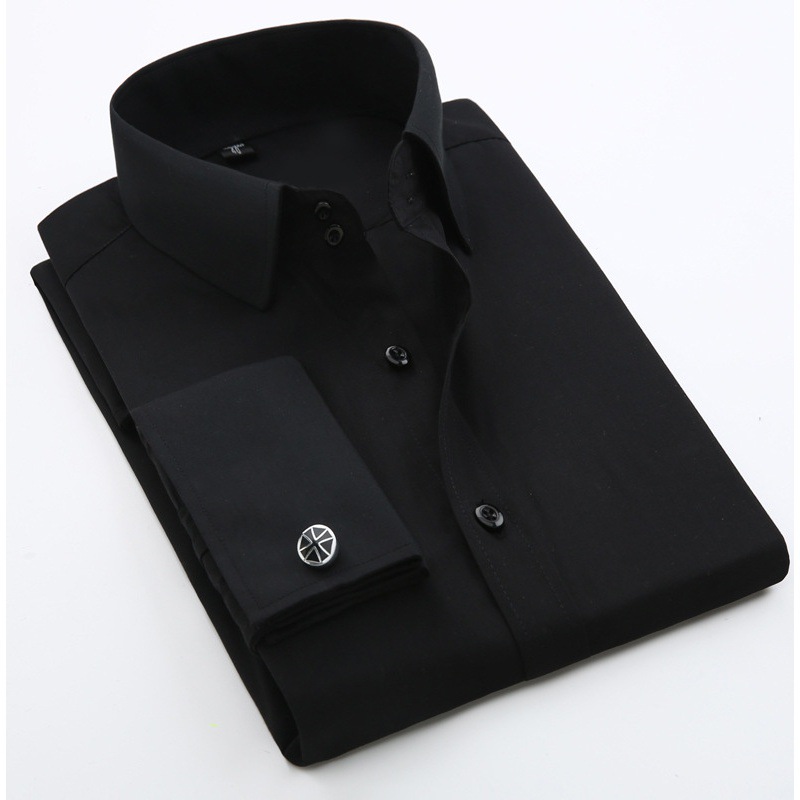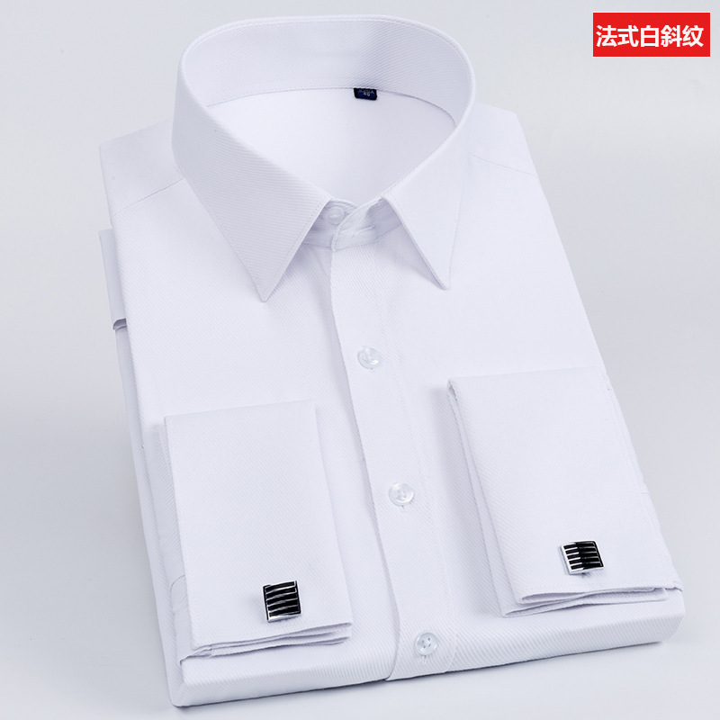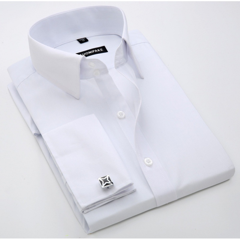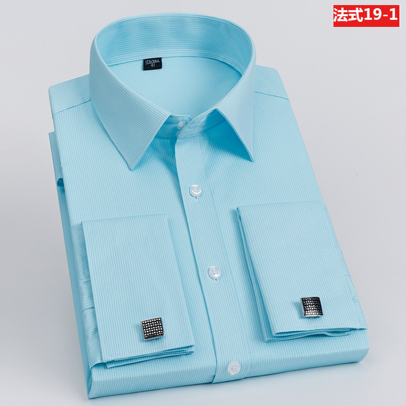 봄 프랑스 커프스 단추 셔츠 남성용 긴팔 슬림핏 비즈니스 의류 셔츠 슬림핏 슬리브 네일 연회 웨딩 남성 의류스토어 가기