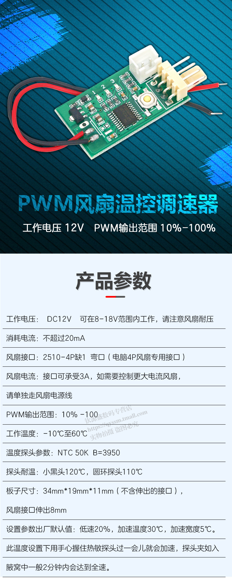 단일 12V DC PWM 팬 온도 제어 총재 4 선 섀시 캐비닛 컴퓨터 팬 온도 제어 소음 감소 모듈