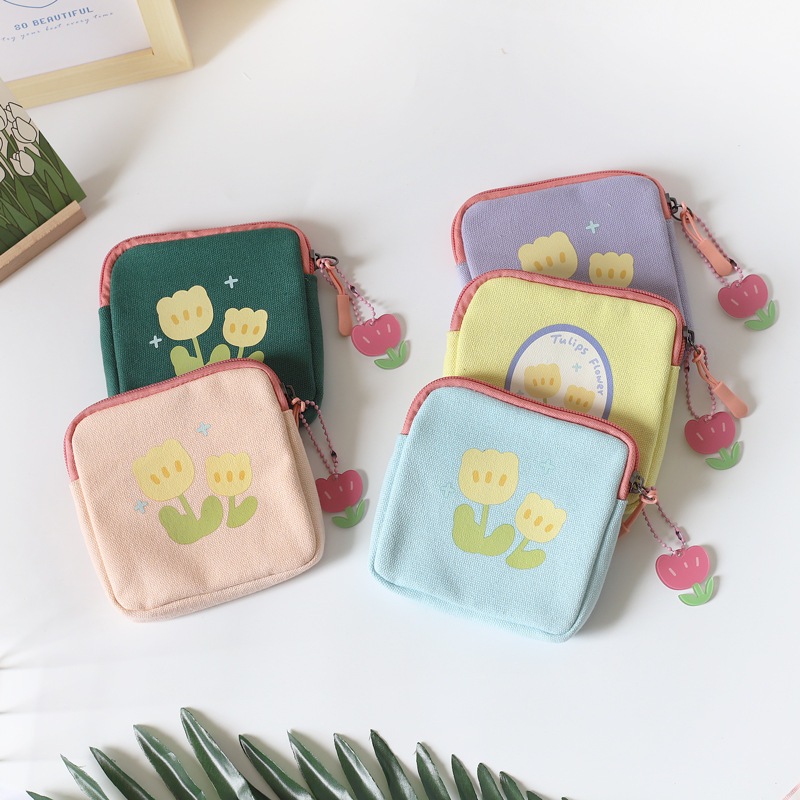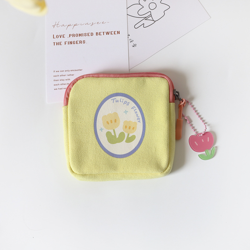 한국 스타일 귀여운 소녀의 마음 여름 대비 컬러 동전 지갑 여성용 심플 플라워 스퀘어 백 학생 동전 가방스토어 가기