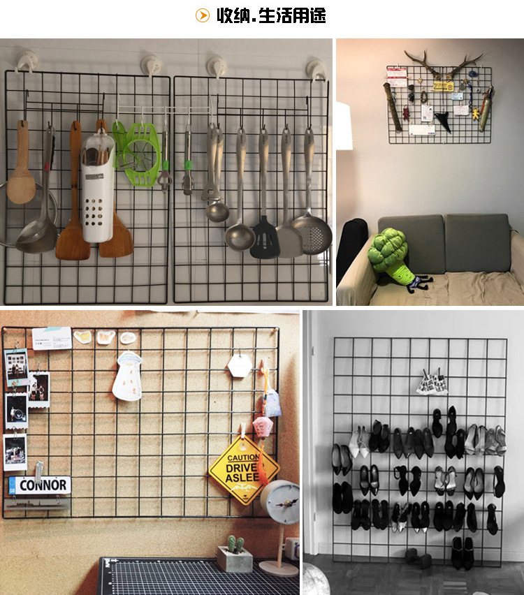블랙 대담한 메쉬 그리드 사진 벽걸이 보석 철 메쉬 난간 선반 그리드 서브넷 전시 랙 교수형