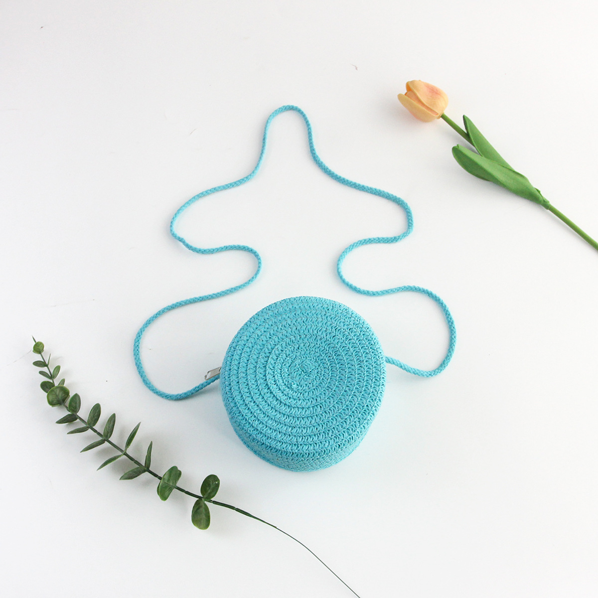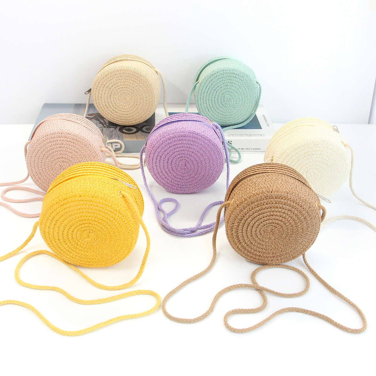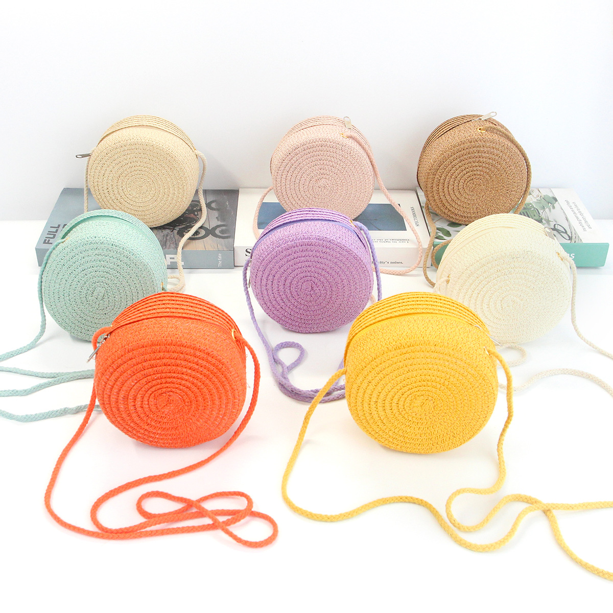 [슈퍼 가격] 패션 어린이 밀짚 가방 여름 메신저 가방 동전 지갑 12cm 라운드 숄더 백 배낭스토어 가기