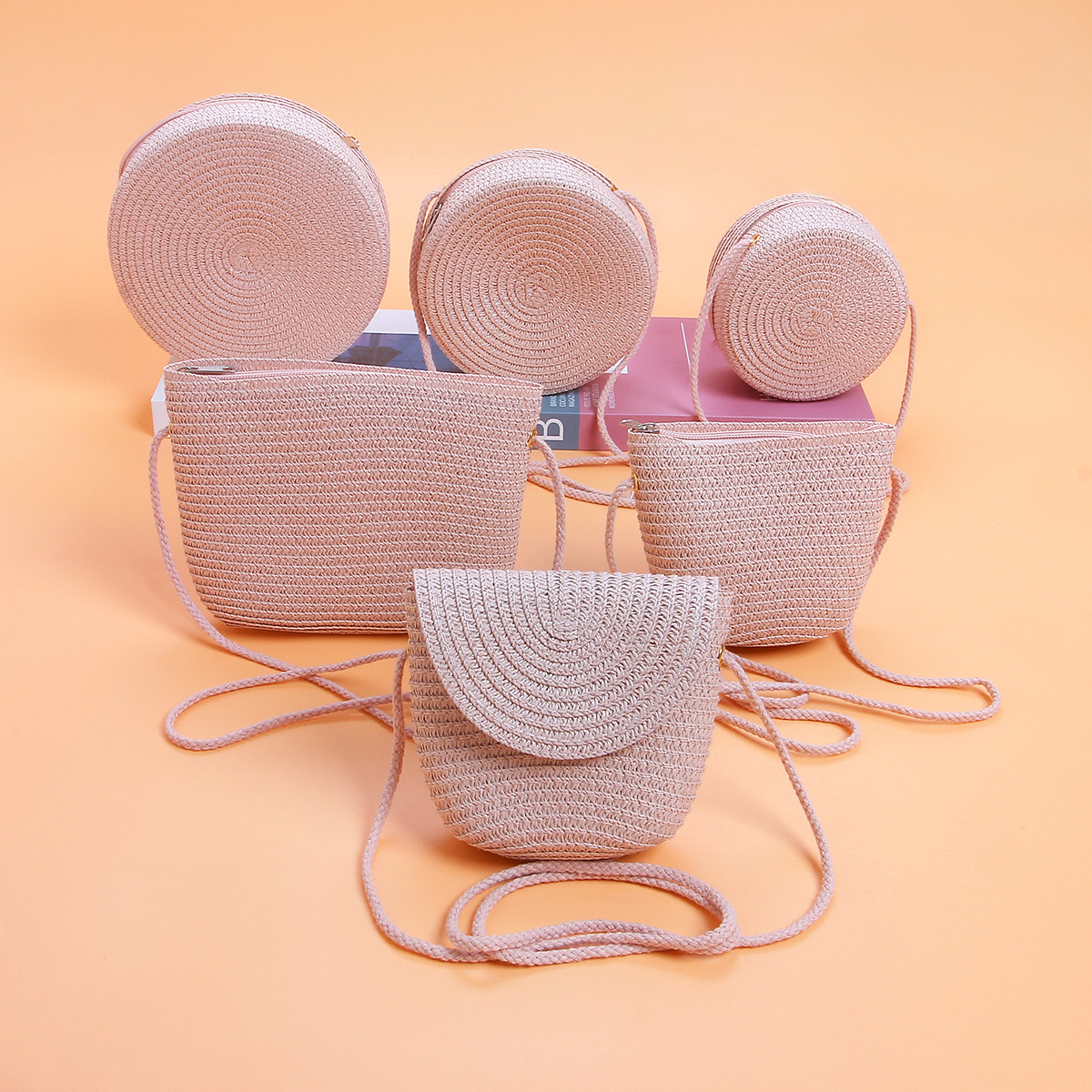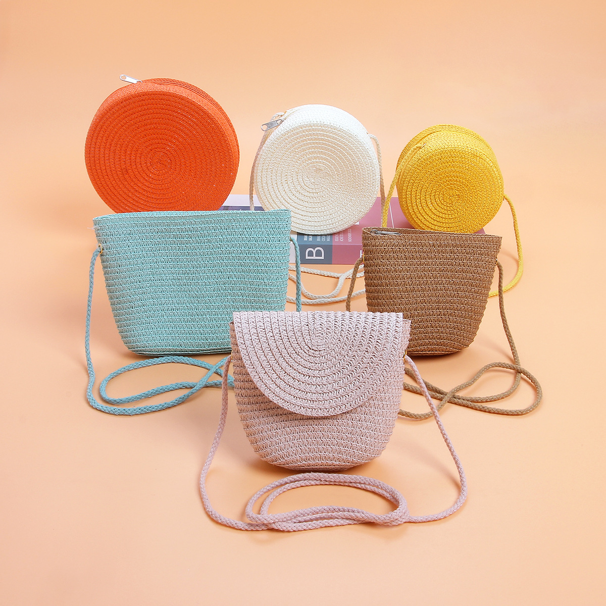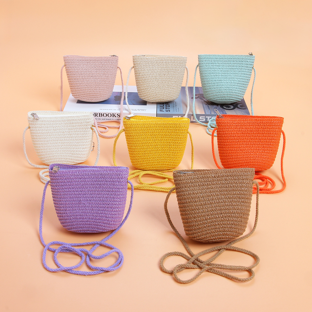 [슈퍼 가격] 패션 어린이 밀짚 가방 여름 메신저 가방 동전 지갑 12cm 라운드 숄더 백 배낭스토어 가기
