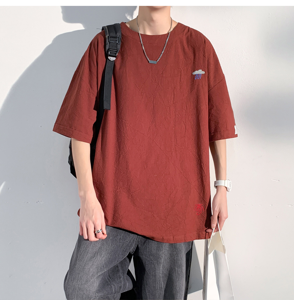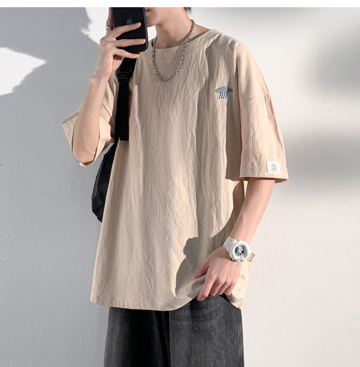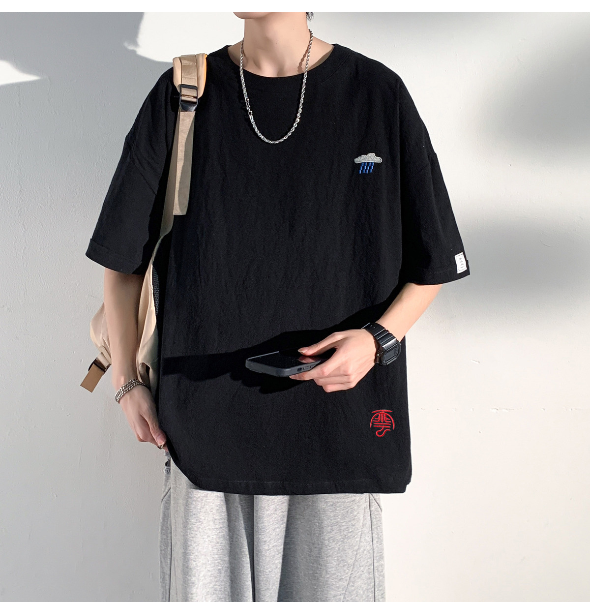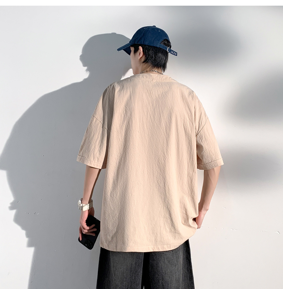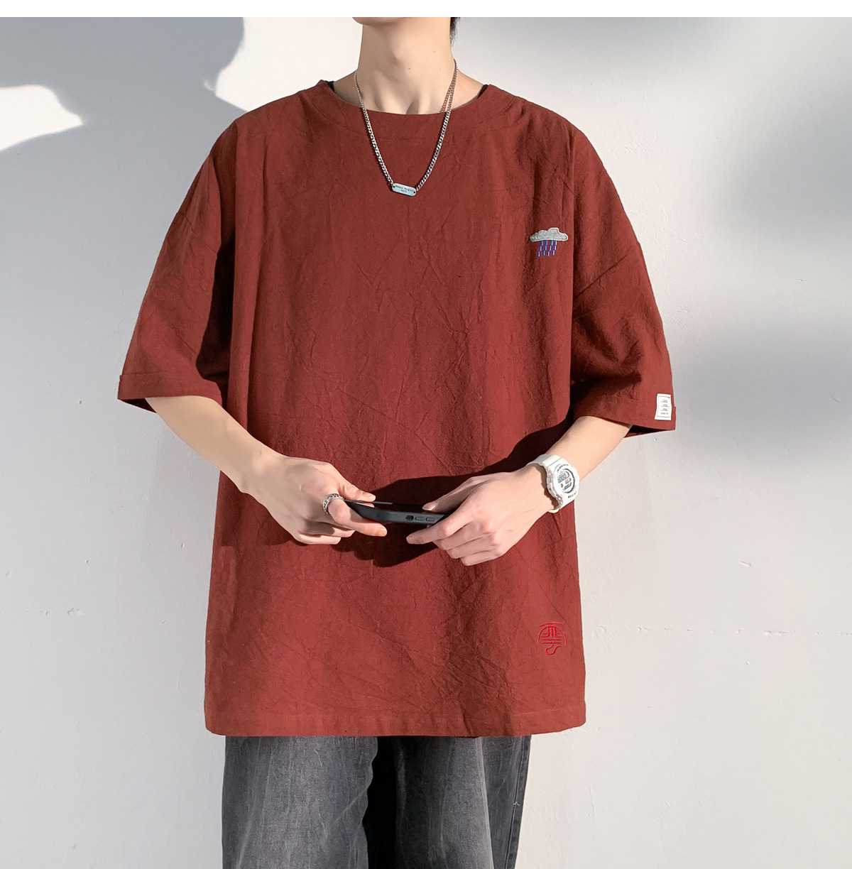 코튼 및 리넨 반팔 티셔츠 남성용 여름 모방 리넨 마이크로 숄더 남성 중국 스타일 자수 느슨한 캐주얼 홍콩 스타일 라운드 넥스토어 가기