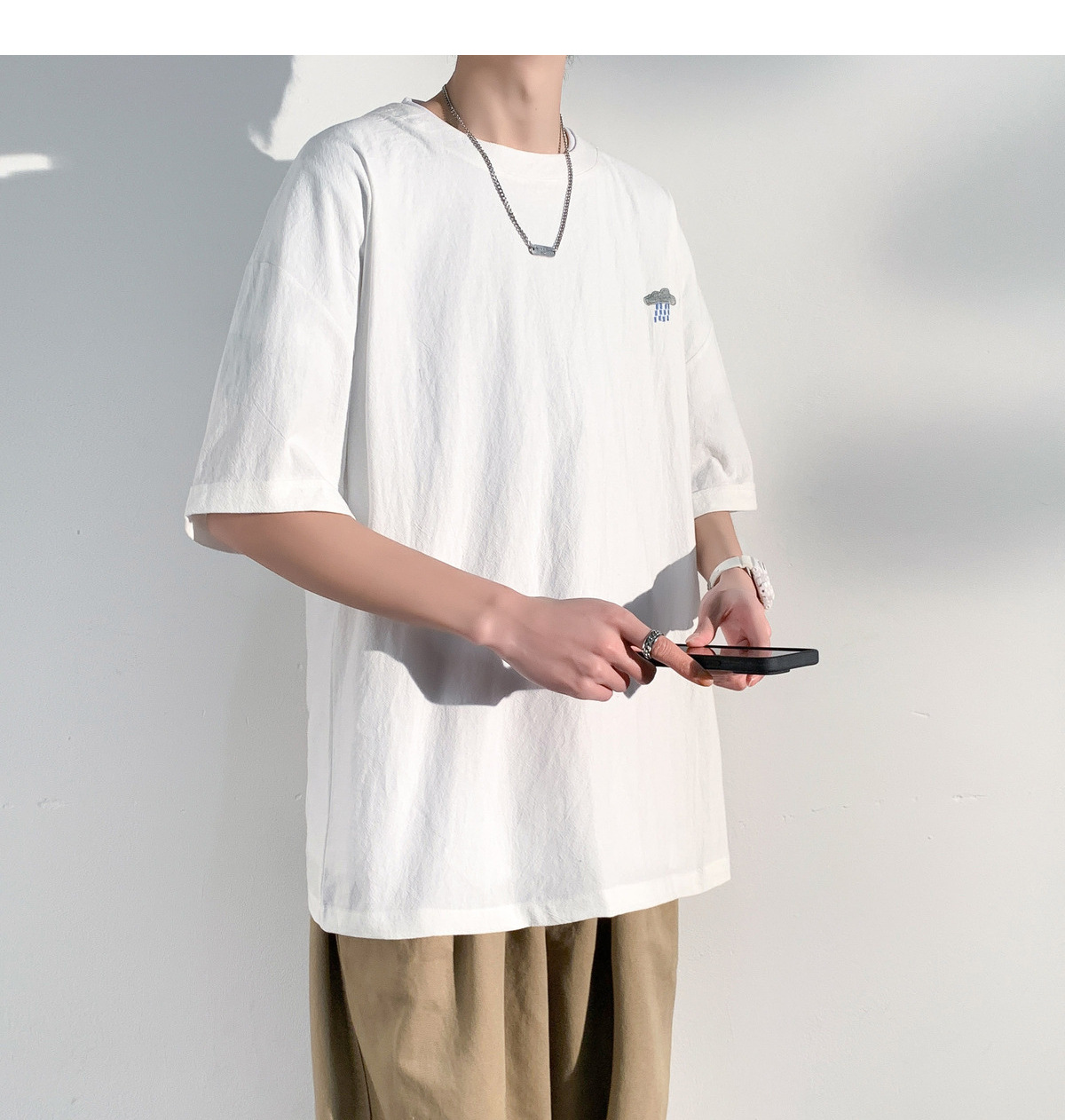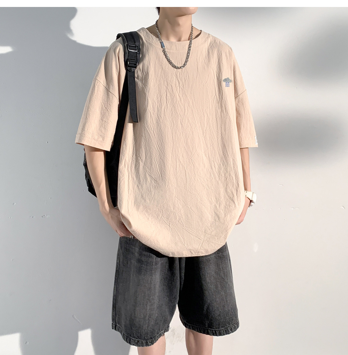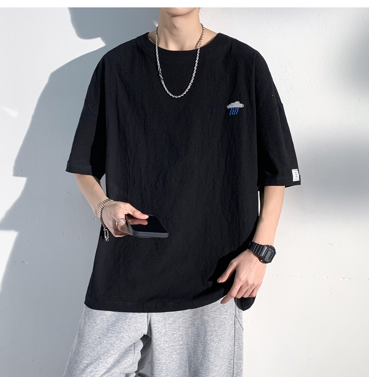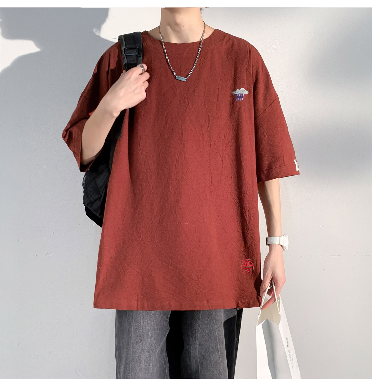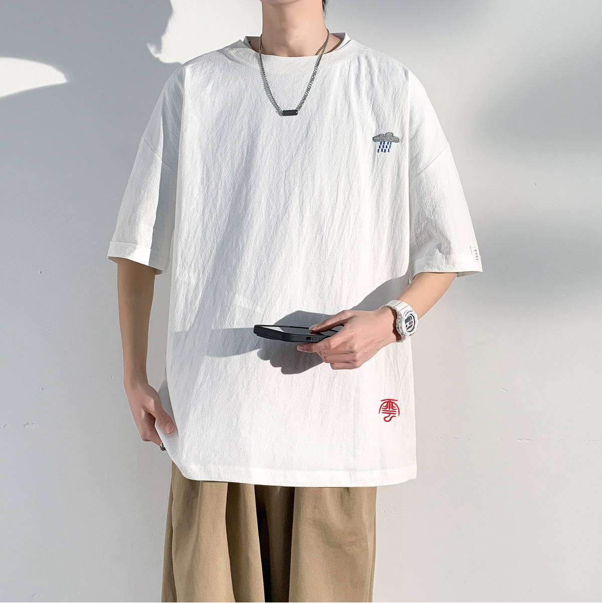 코튼 및 리넨 반팔 티셔츠 남성용 여름 모방 리넨 마이크로 숄더 남성 중국 스타일 자수 느슨한 캐주얼 홍콩 스타일 라운드 넥스토어 가기