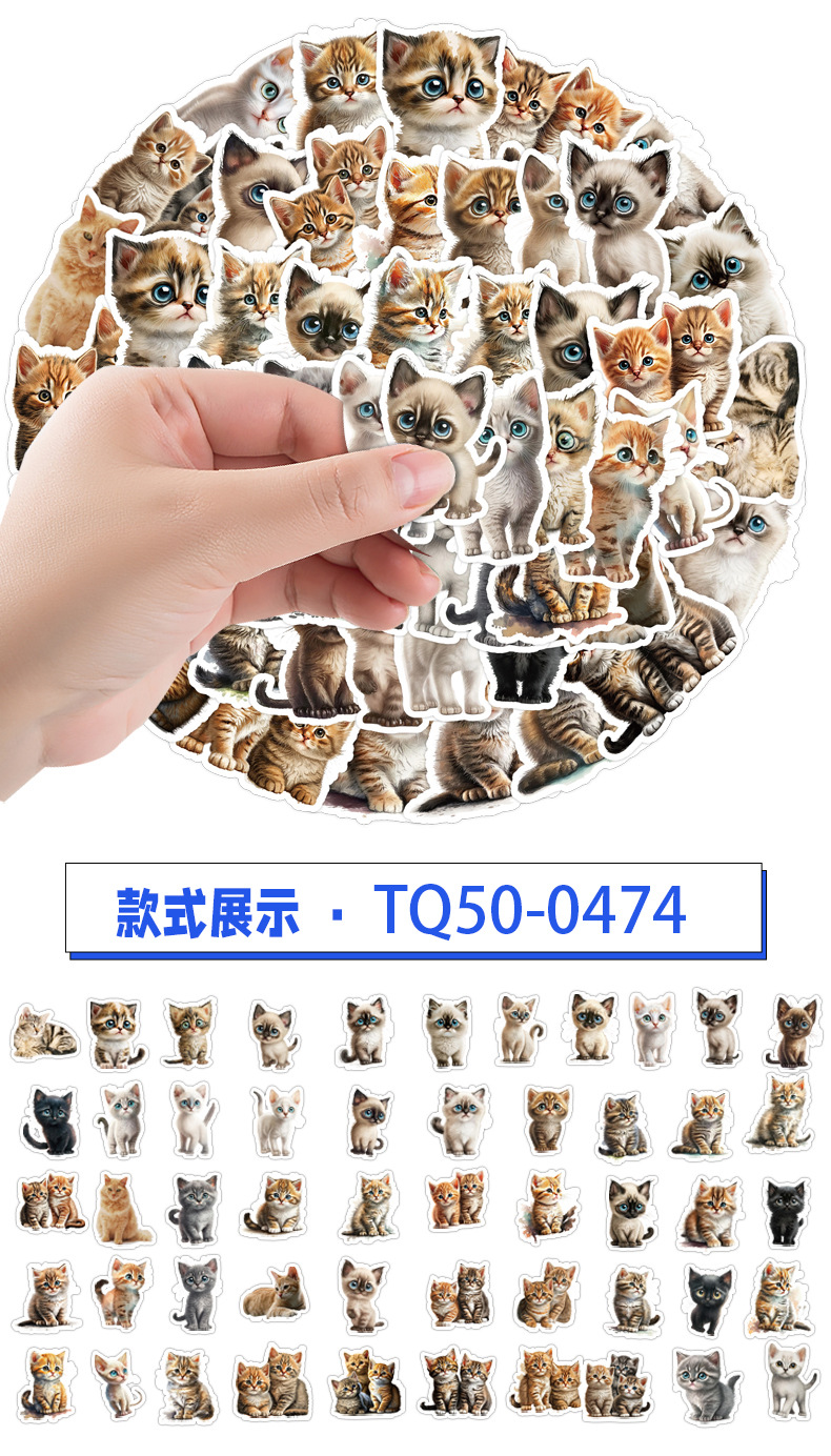 국경 간 50 비침습적 귀여운 새끼 고양이와 강아지 낙서 스티커 휴대 전화 컴퓨터 방수 고양이 핸드북 스티커