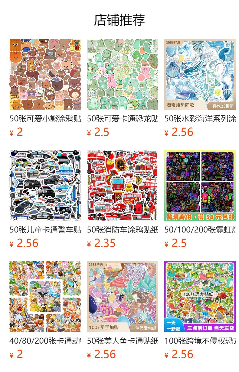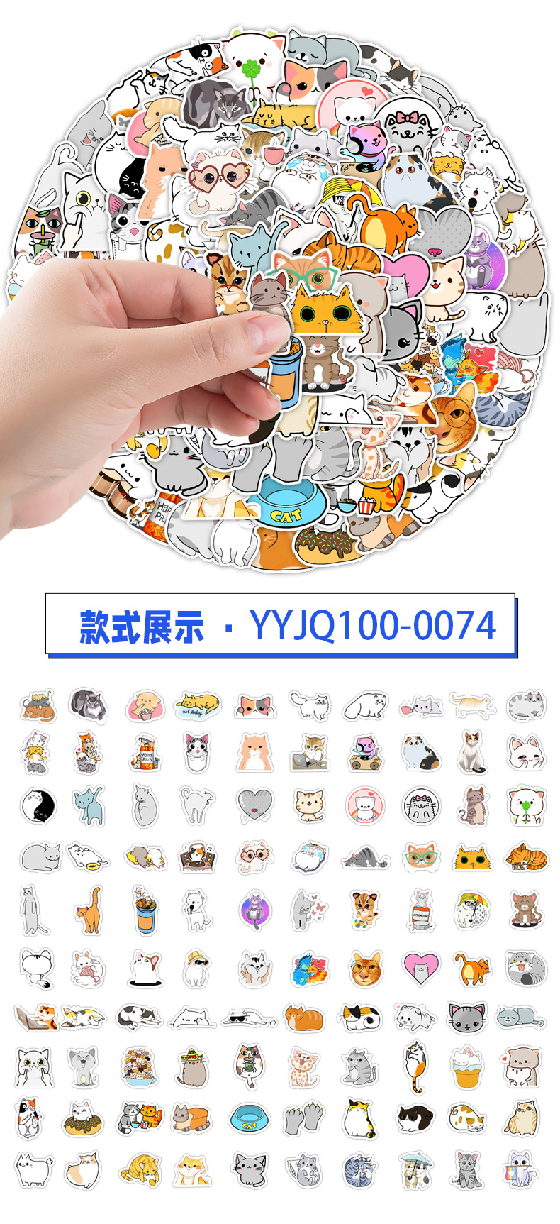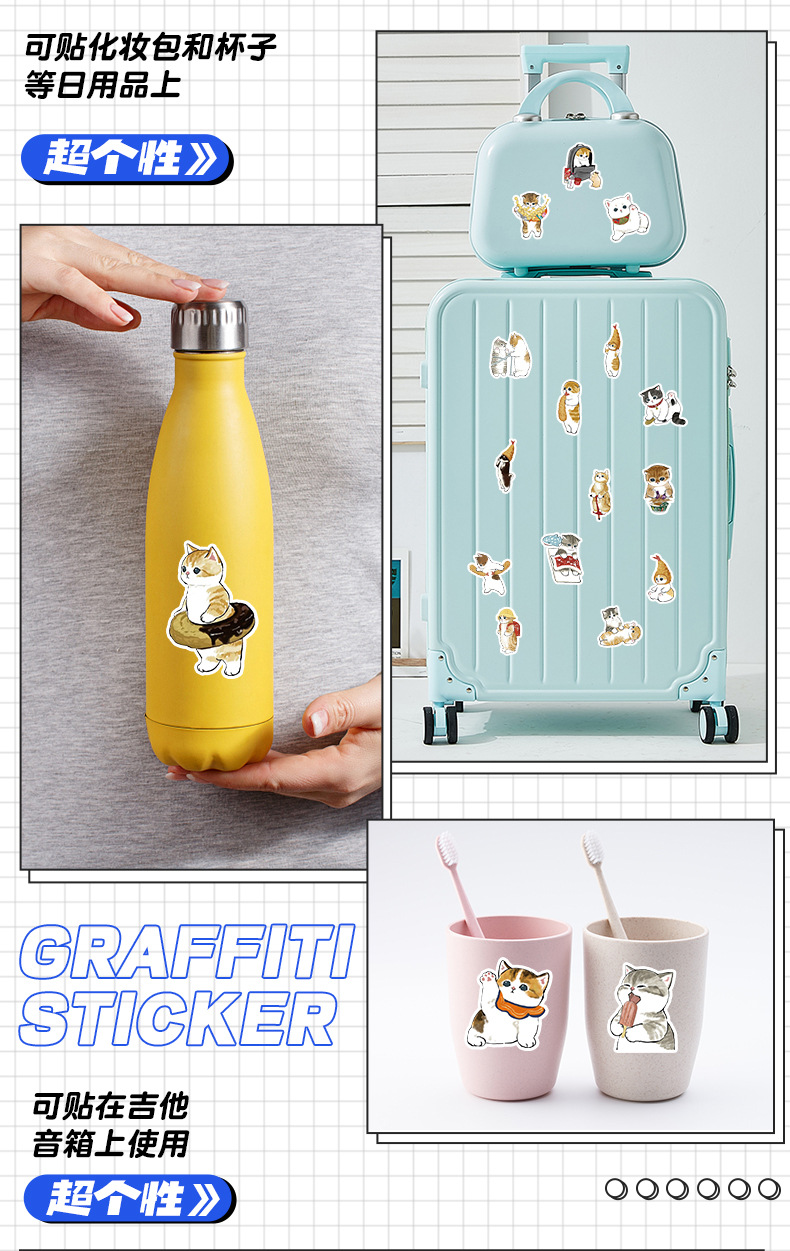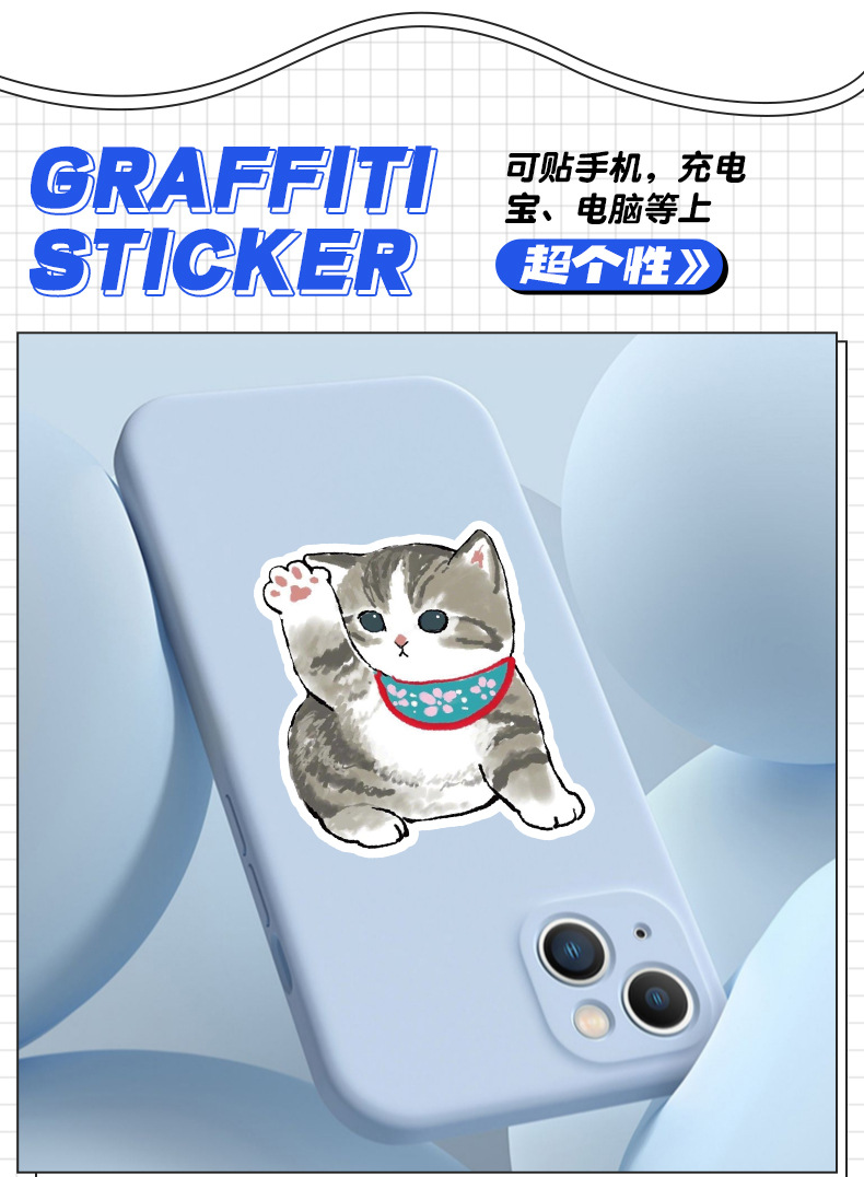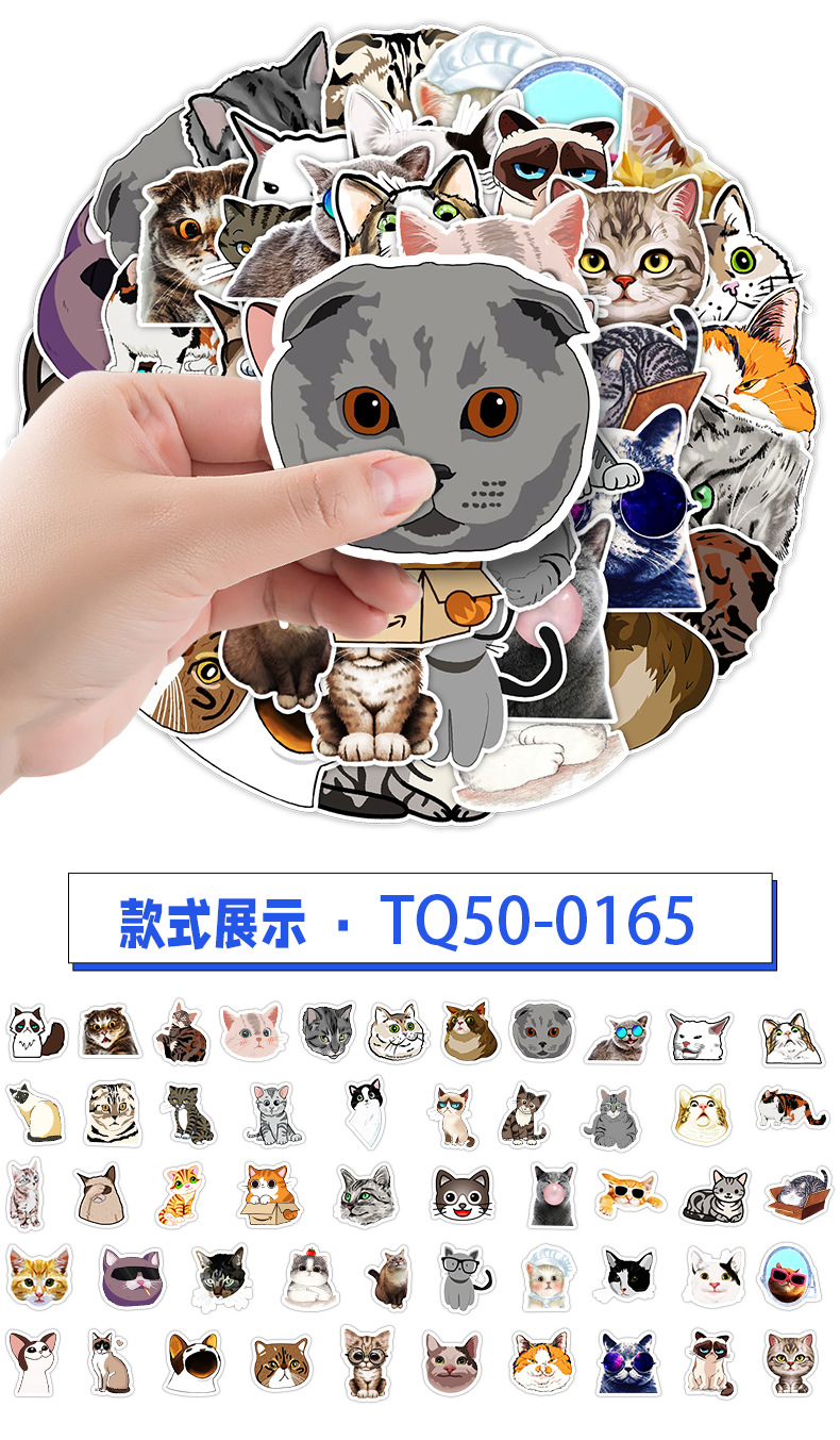 국경 간 50 비침습적 귀여운 새끼 고양이와 강아지 낙서 스티커 휴대 전화 컴퓨터 방수 고양이 핸드북 스티커스토어 가기