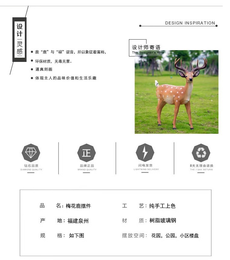정원 정원 안뜰 홀 수지 유리 섬유 강화 플라스틱 동물 조각 장식 시뮬레이션 Sika 사슴 바닥 대형 장식품스토어 가기