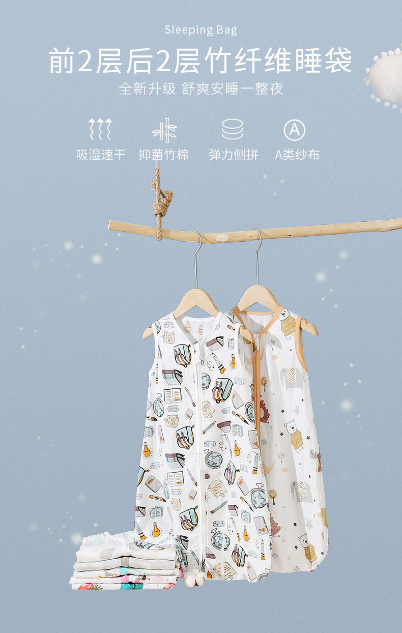 어린이 더블 레이어 대나무 면 섬유 여름 아기 안티 킥 신생아 조끼 스타일 유아 침낭스토어 가기