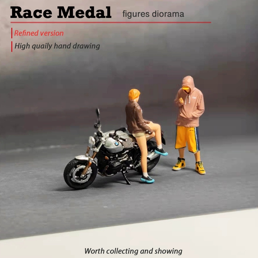RM1:64 오토바이 보물 * 라떼 BMW 무거운 오토바이 사이드 얀 여성 라이더 세련된 주니어 인형 장식품 모델