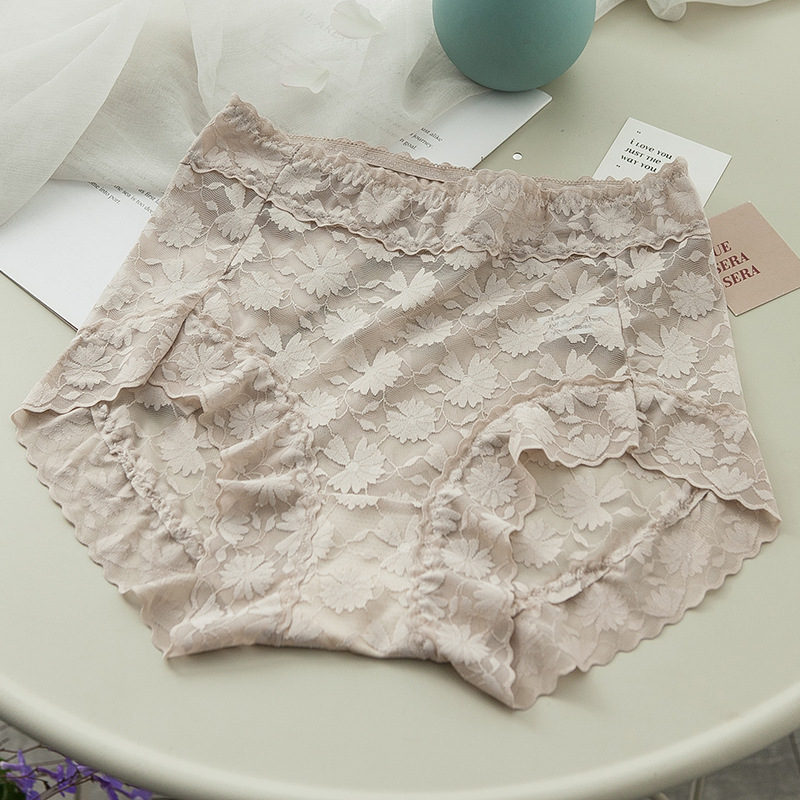 하이 웨이스트 레이스 여성용 속옷 아이스 실크 통기성 비 마킹 섹시한 배꼽 틴칭 엉덩이 틴칭 작은 배꼽 반바지 여름 얇은스토어 가기