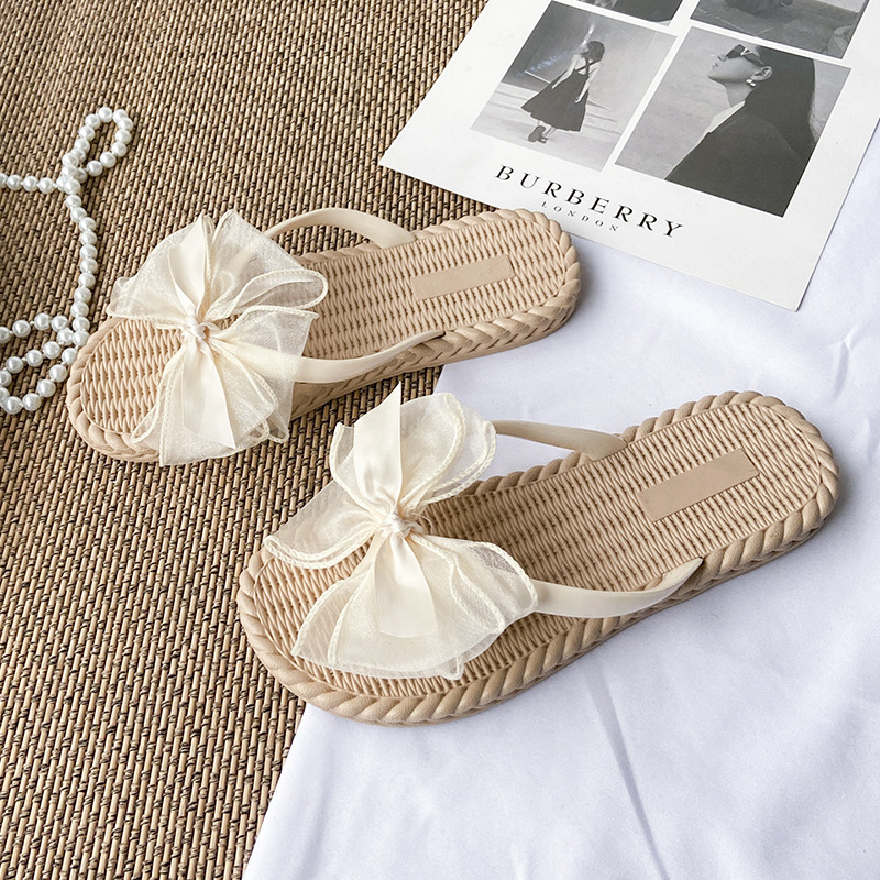 여성용 슬리퍼 2024 여름 새 스타일 인터넷 연예인 보우 플랫 바닥 다용도 아우터 웨트 워터 소프트 바닥 여성용 슬리퍼