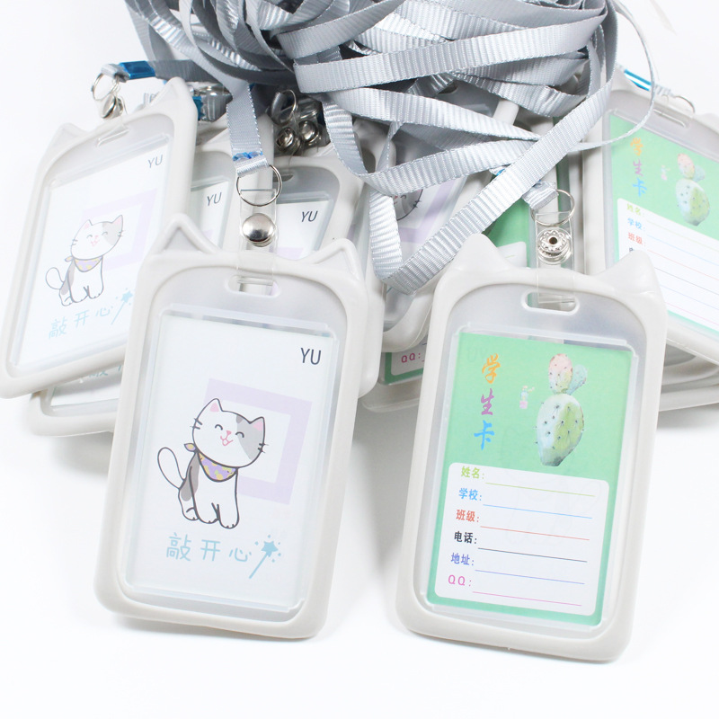 실리콘 카드 커버 교수형 로프 학생 식사 카드 보호 커버 브랜드 버스 지하철 전시회 작업 카드 캠퍼스 카드 커버 도매
