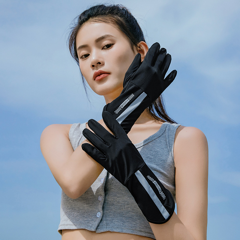 여름 얼음 실크 태양 보호 장갑 여성의 UV 보호 얇은 운전 사이클링 중간 길이 통기성 미끄럼 방지