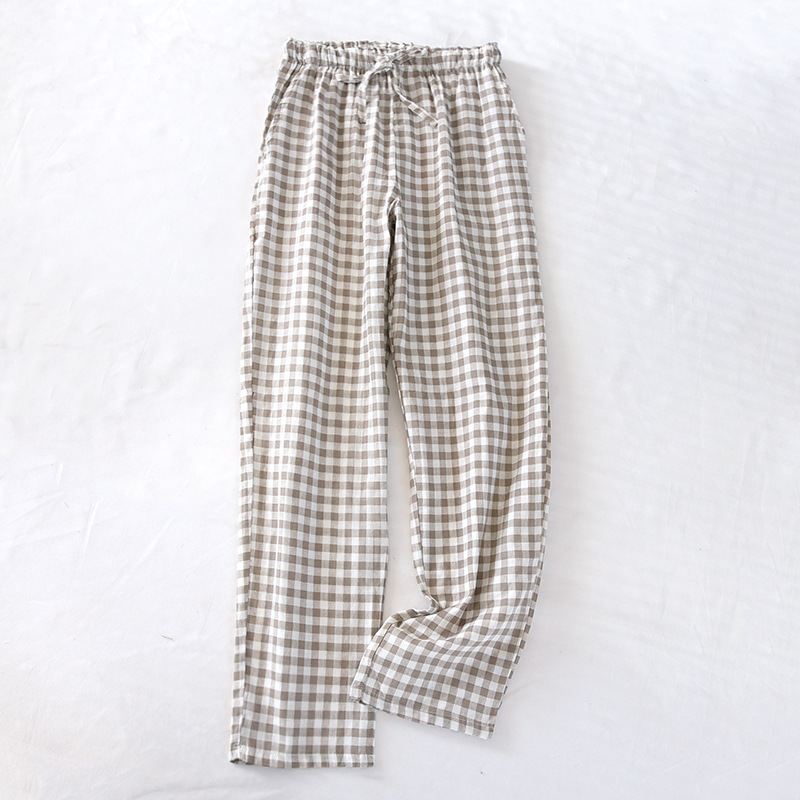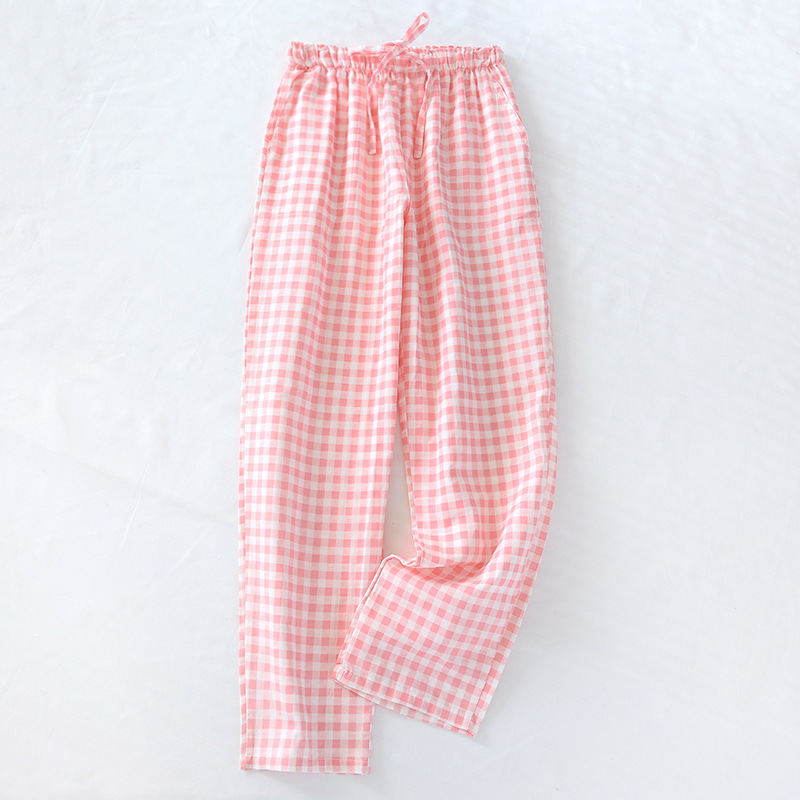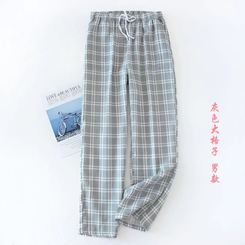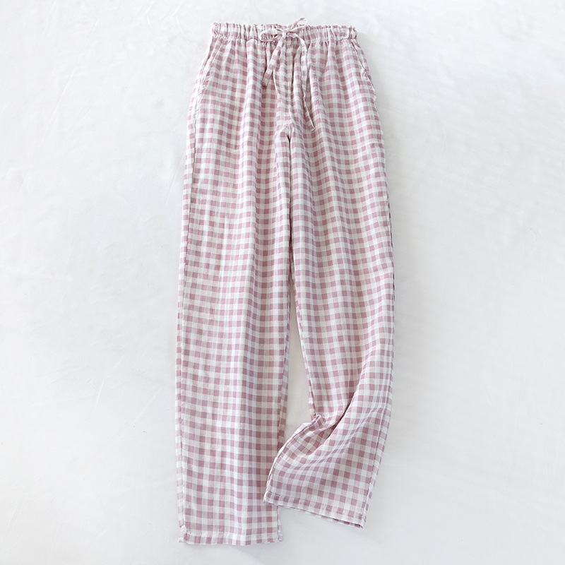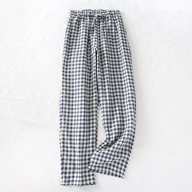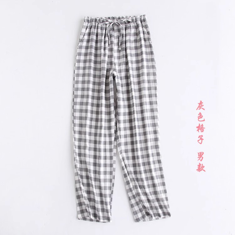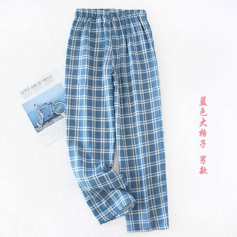 일본식 간단한 격자 무늬 거즈 면 여성용 잠옷 바지 봄과 여름 커플 얇은 면 느슨한 남성용 홈 바지스토어 가기