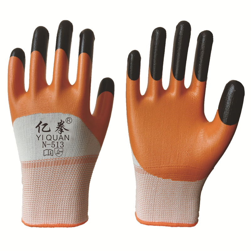 오렌지 니트릴 흰색 거즈 오렌지 고무 검정색 손가락 노동 보호 장갑 내마모성 완전히 담근 니트릴 Qingqing 장갑 공장 도매스토어 가기