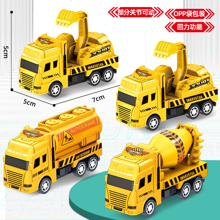 어린이용 풀백 자동차 장난감 만화 엔지니어링 차량 시멘트 믹서 트럭 굴착기 자동차 모델 소년용 교육용스토어 가기
