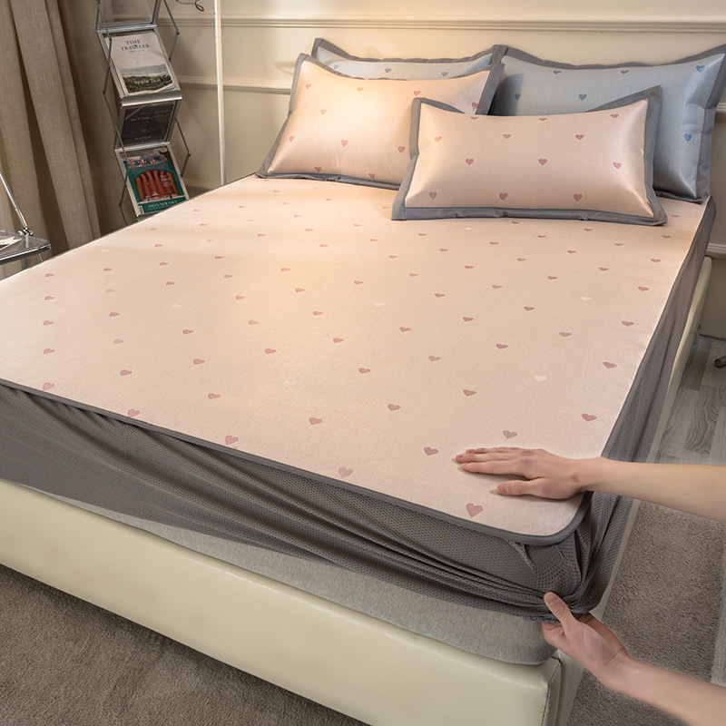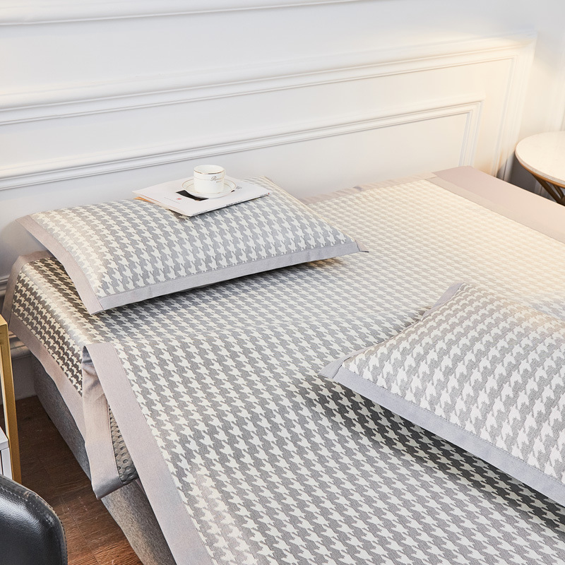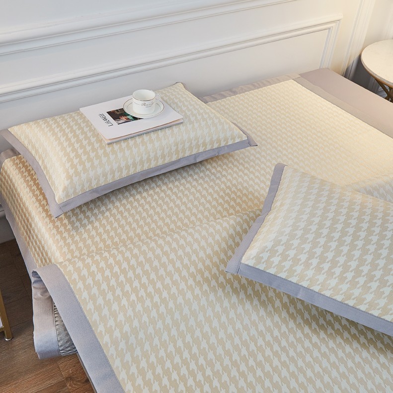 여름 탄소 빛 자카드 아이스 실크 매트 빨 간단한 Ins 스타일 접이식 통기성 에어컨 등나무 매트 3 피스 세트스토어 가기