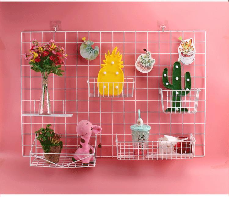 그리드 교수형 바구니 트레이 철조망 홈 장식 슈퍼마켓 선반 흰색 대형 저장 바구니