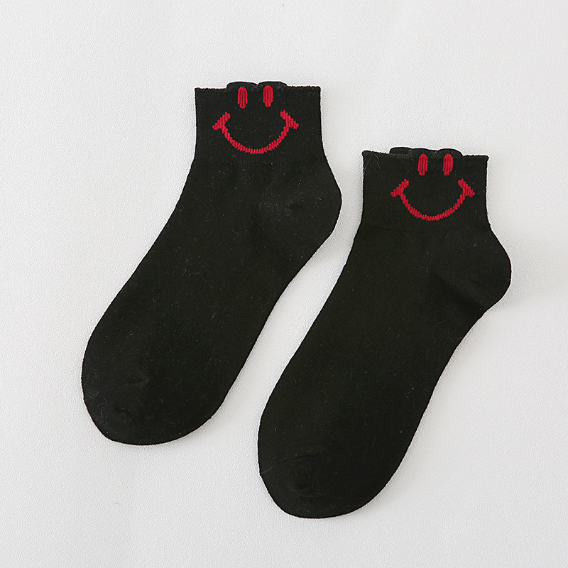 2022 봄과 여름 새로운 만화 스마일 양말 여성의 성격 표현 가방 여성용 보트 양말 면 여성 양말 공장 도매