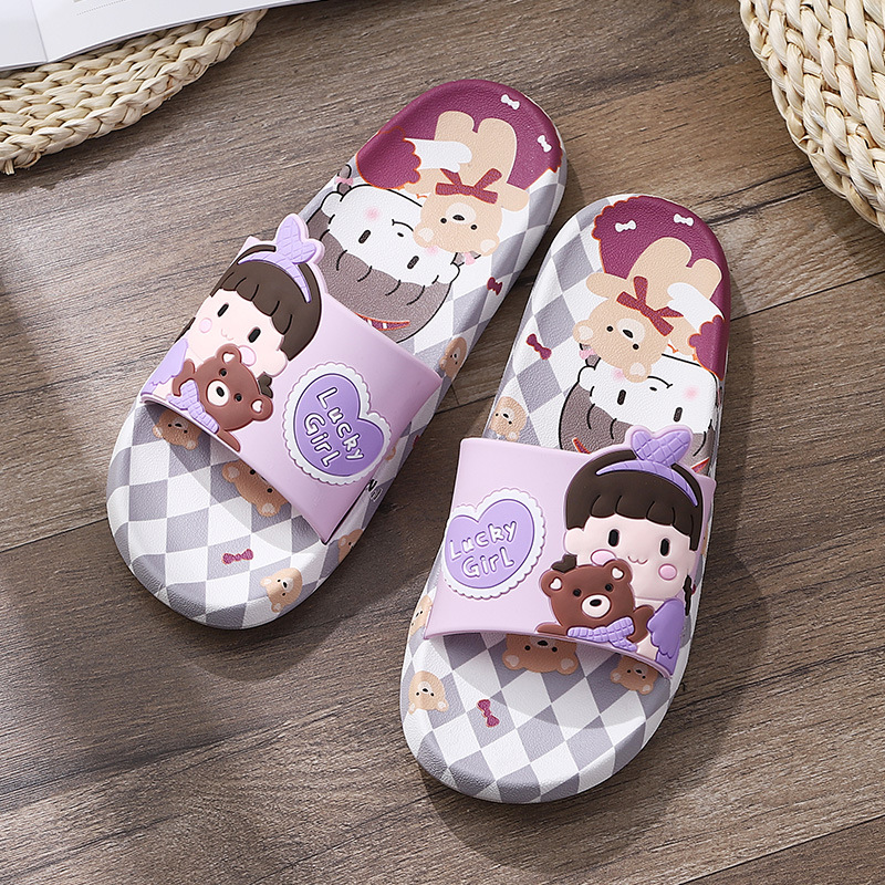 여자 슬리퍼 여름 만화 미끄럼 방지 욕실 플라스틱 샌들과 슬리퍼 소녀 패션 홈 기숙사 학생 신발