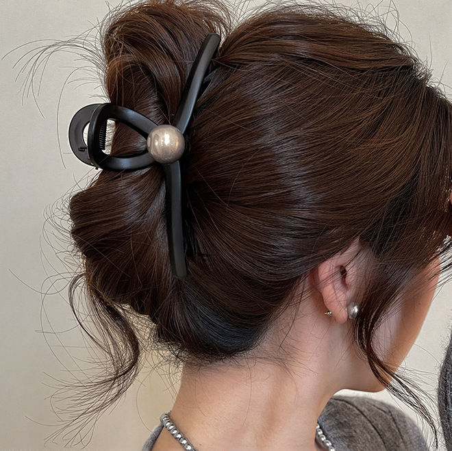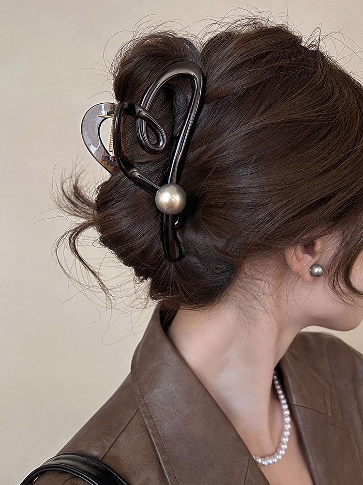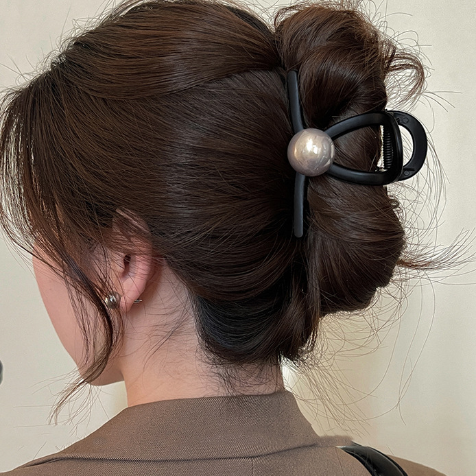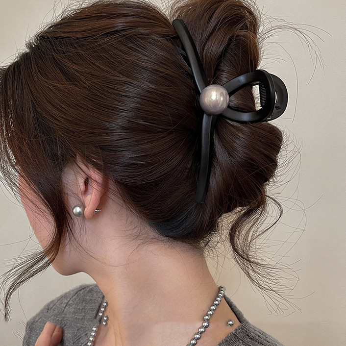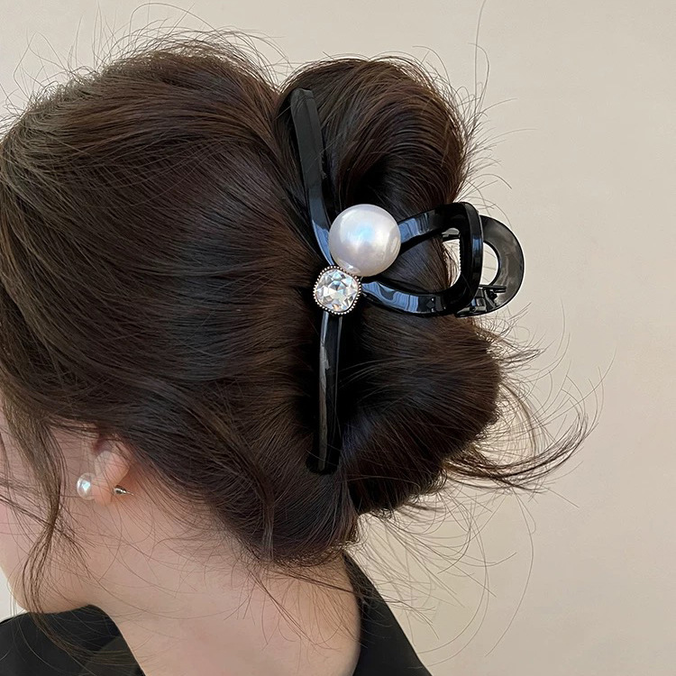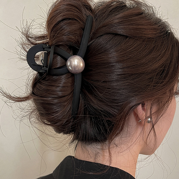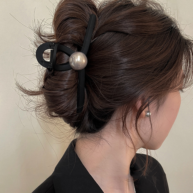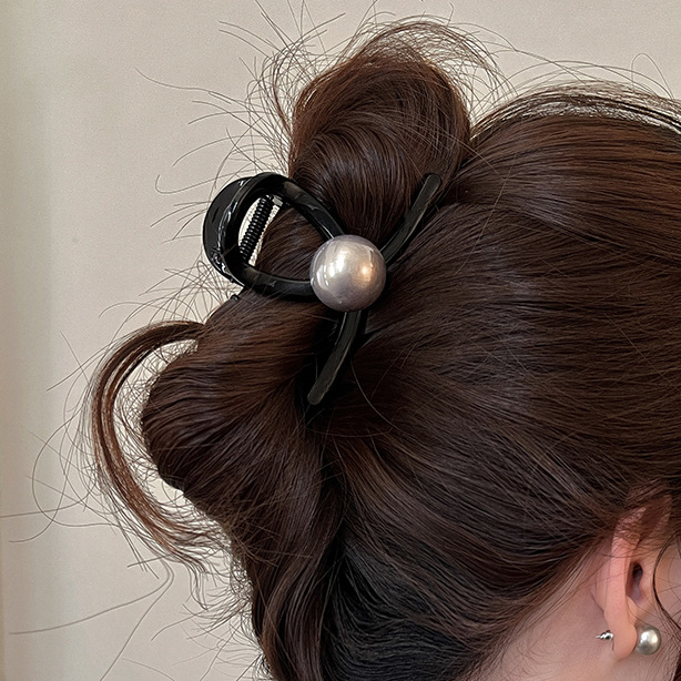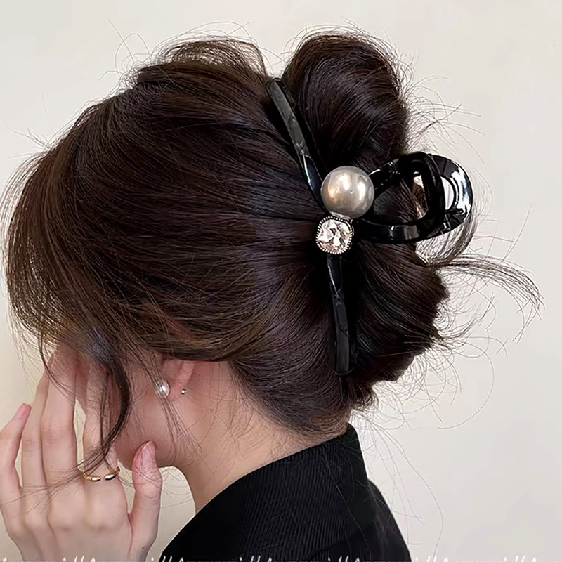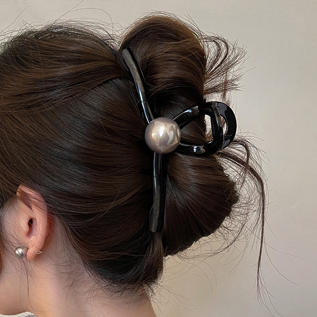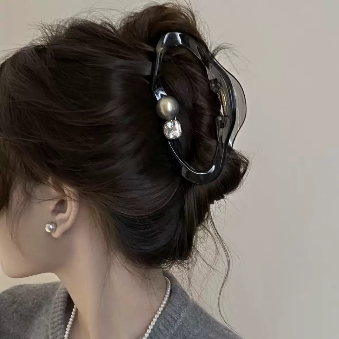 2025 봄과 여름 헤어 상어 클립 하이 엔드 센스 백 헤드 진주 머리핀 대형 그릴 클립 마일라드 빈티지 헤어 액세서리