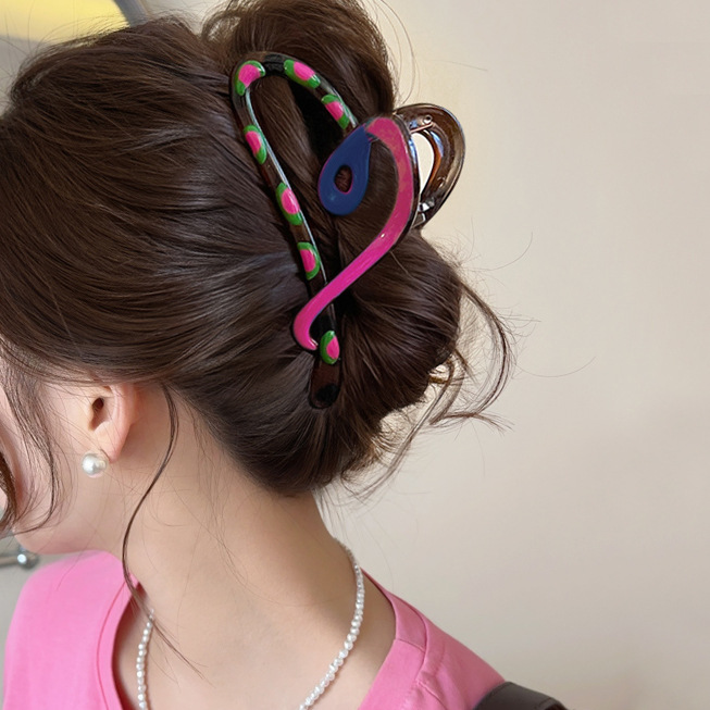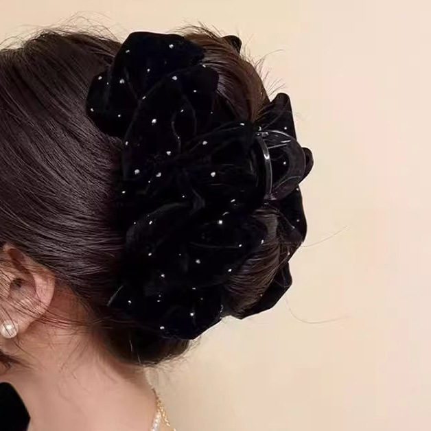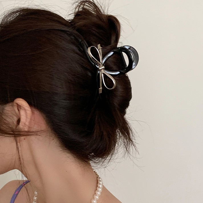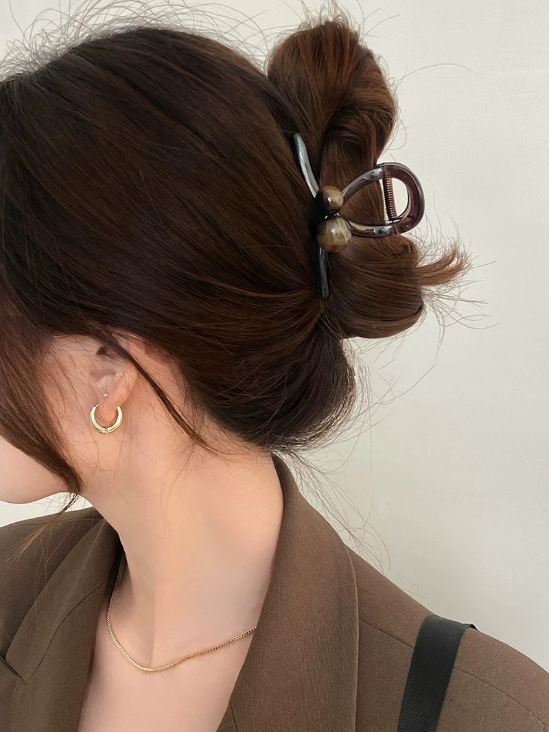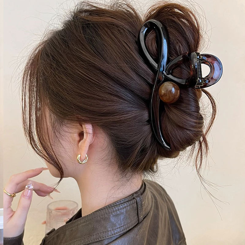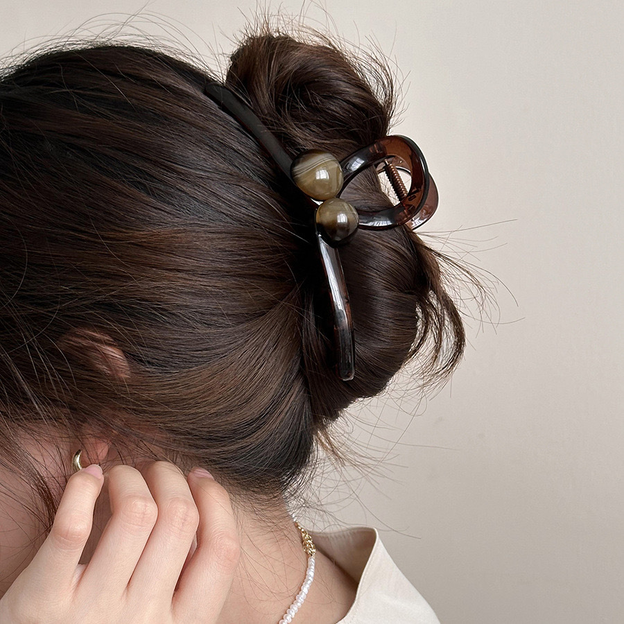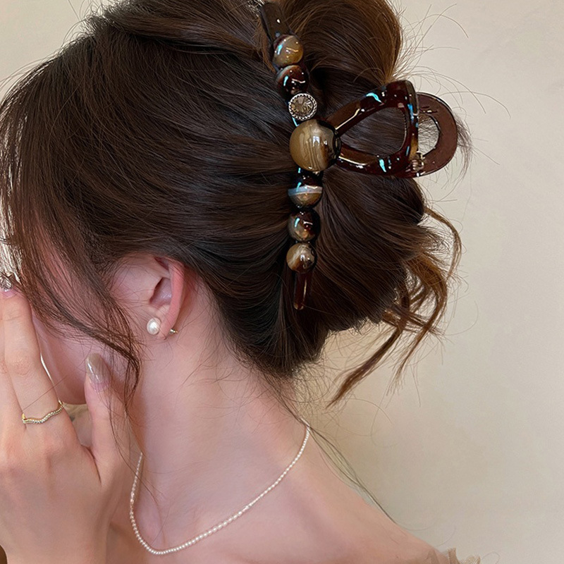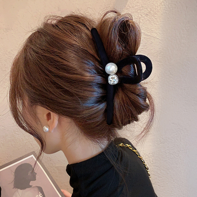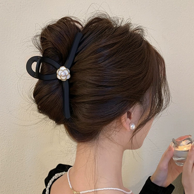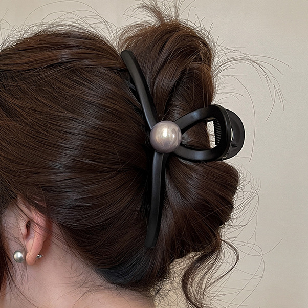 2025 봄과 여름 헤어 상어 클립 하이 엔드 센스 백 헤드 진주 머리핀 대형 그릴 클립 마일라드 빈티지 헤어 액세서리