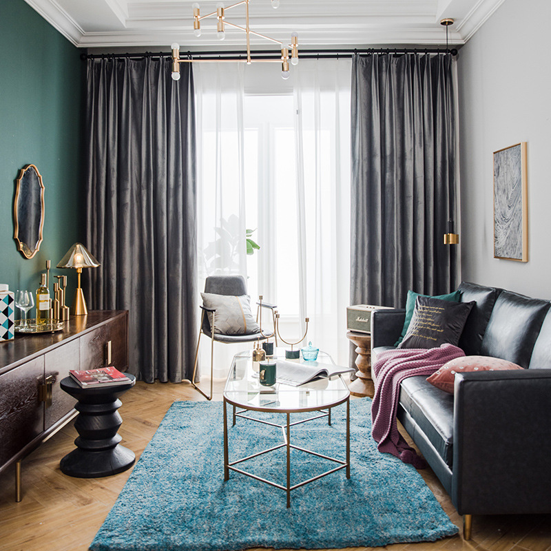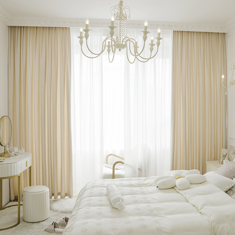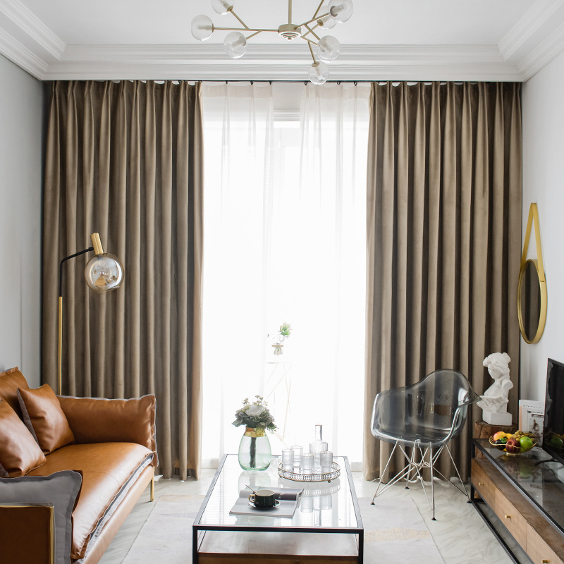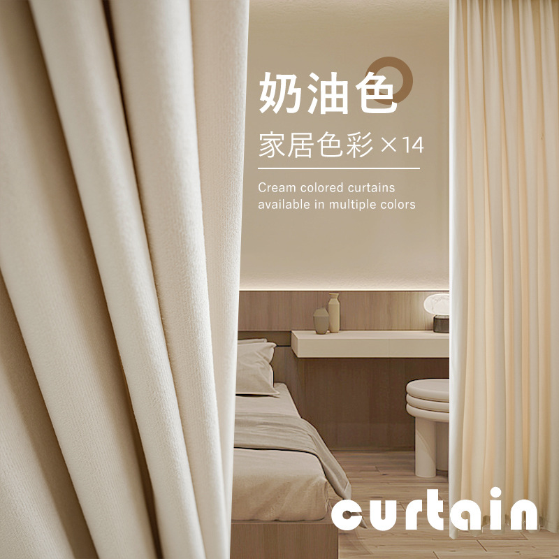 라이트 럭셔리 방음 프렌치 벨벳 커튼 북유럽 심플 블랙아웃 침실 거실 밀크티 색상 2024년 신제품스토어 가기