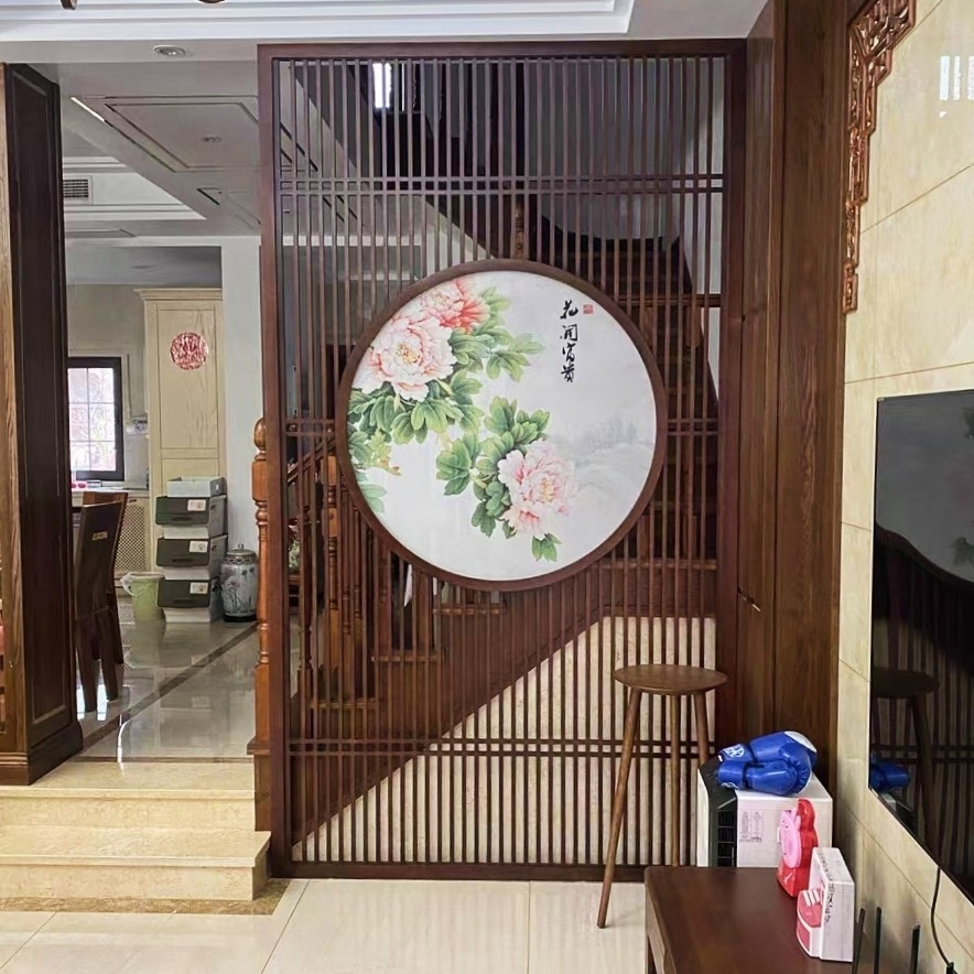 새로운 중국 스타일의 단단한 나무 원사 그림 화면 파티션 거실 그릴 이동 대피소 복도 간단한 일본 스타일스토어 가기