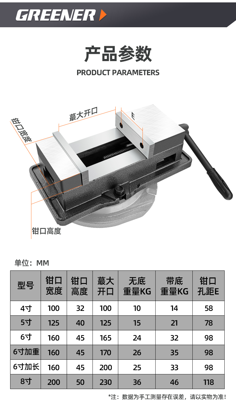 그린우드 플랫 플라이어 각도 고정 바이스 클램프 밀링 머신 바이스 작업대 기계 클램프 중공업 등급