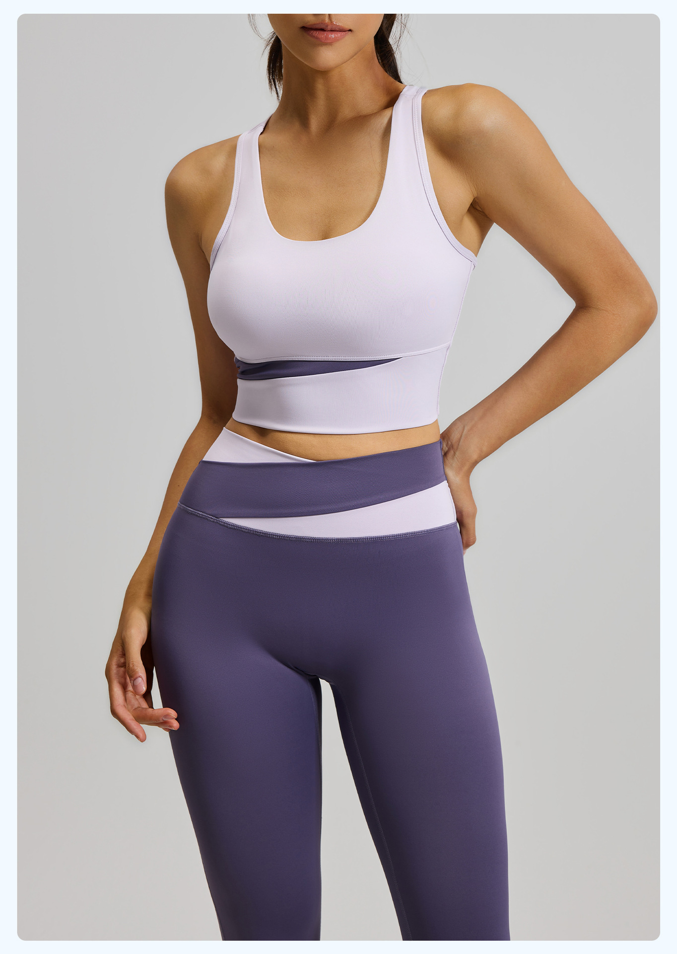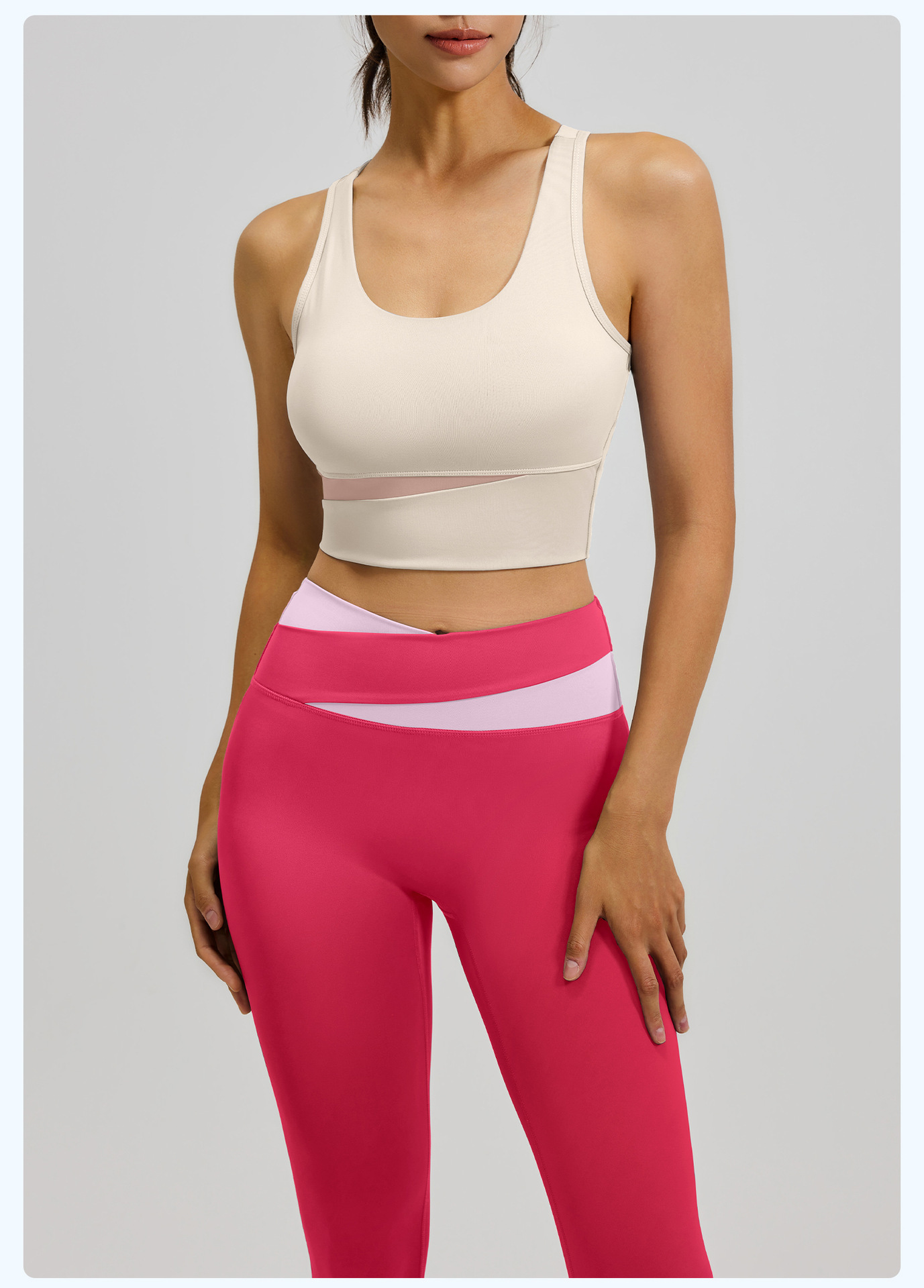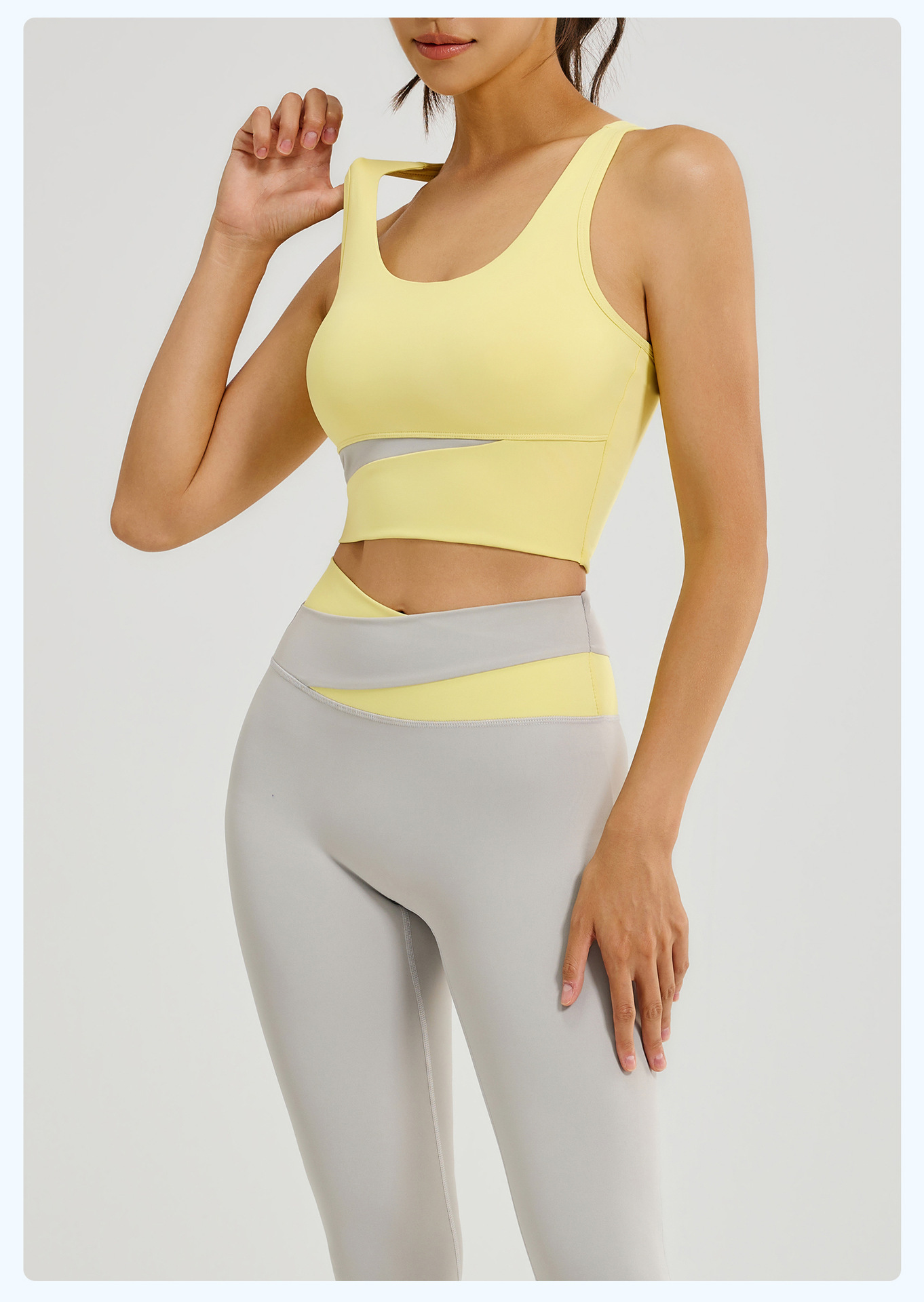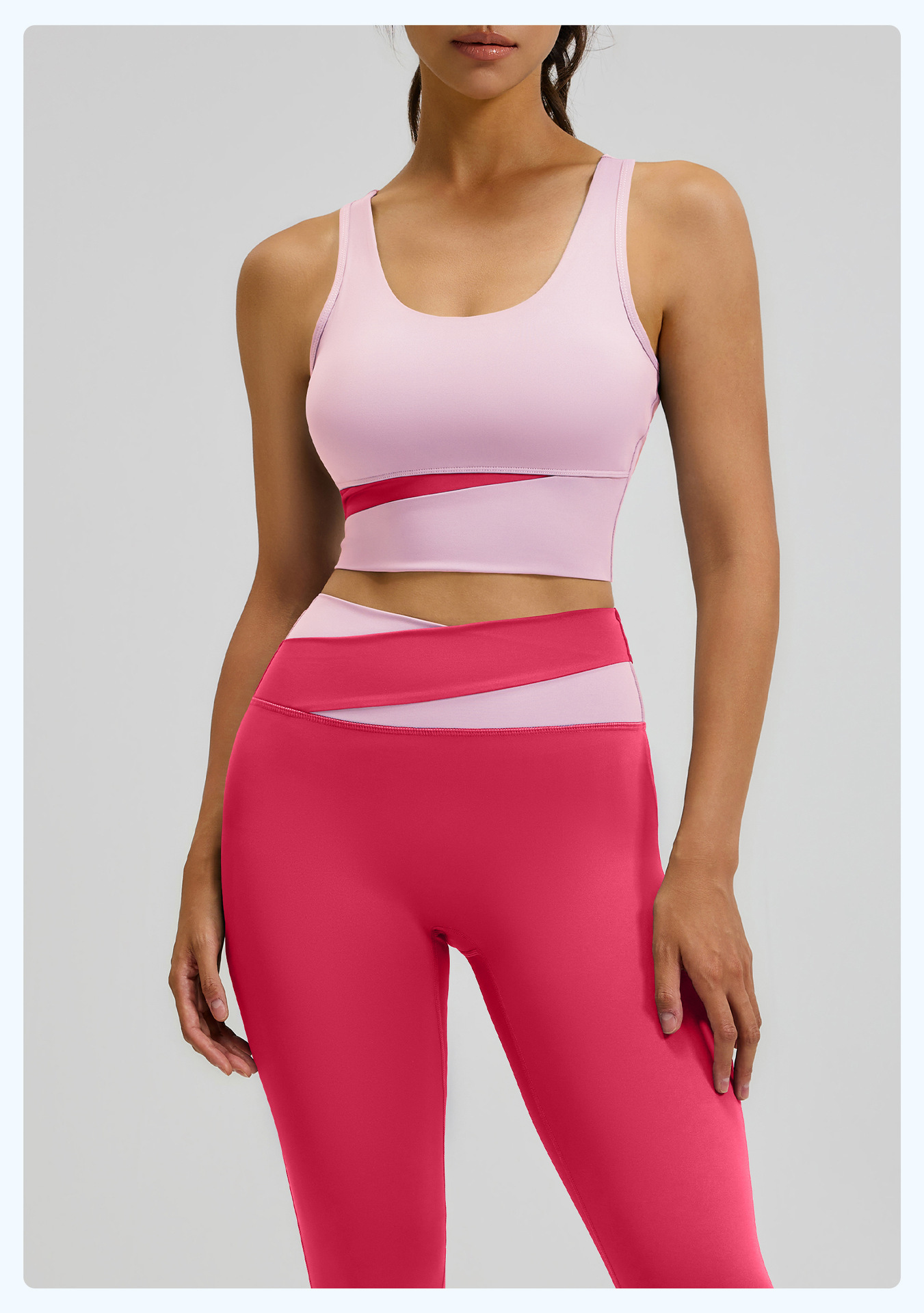 새로운 스티치 대비 컬러 요가 세트 세트 충격 방지 푸시 업 브래지어 스포츠 아름다운 등 하이 웨이스트 크로스 2 색 스포츠 바지