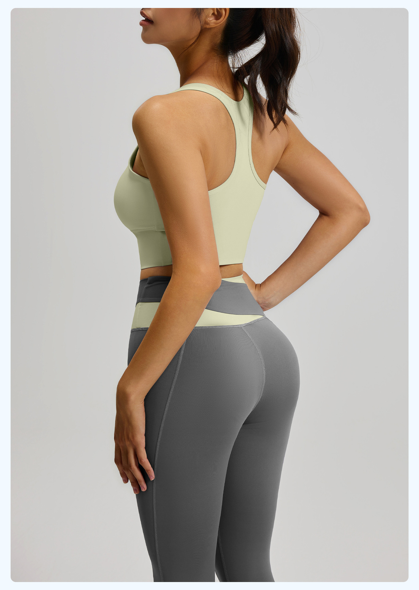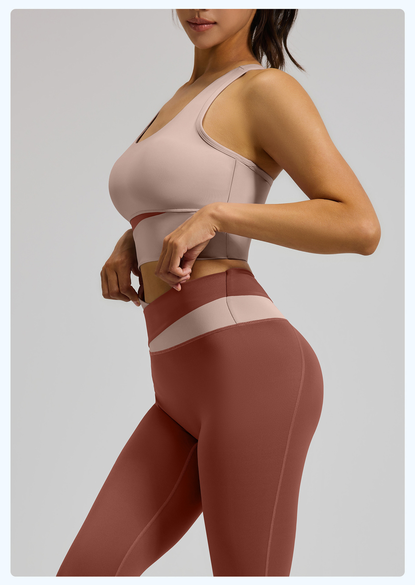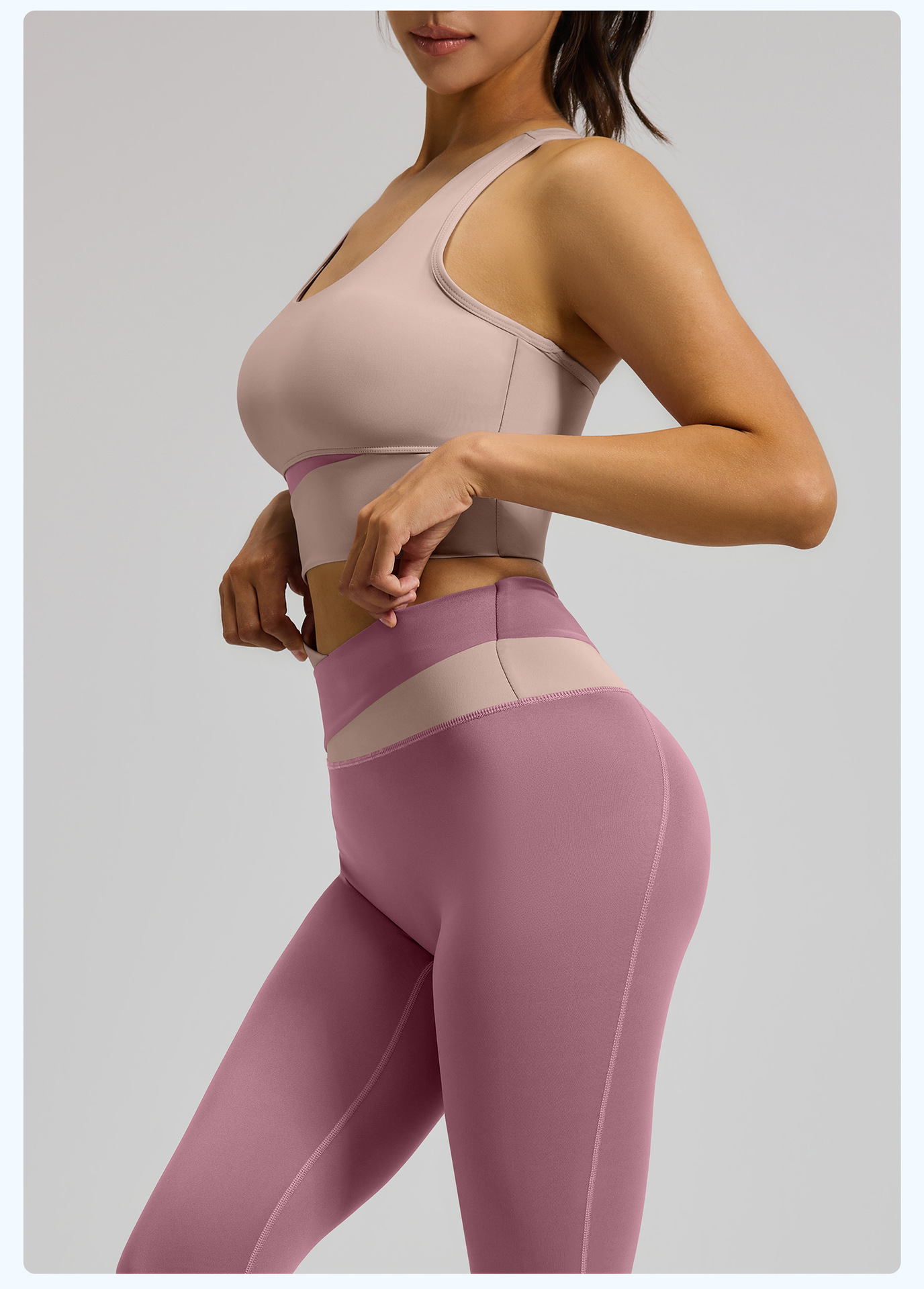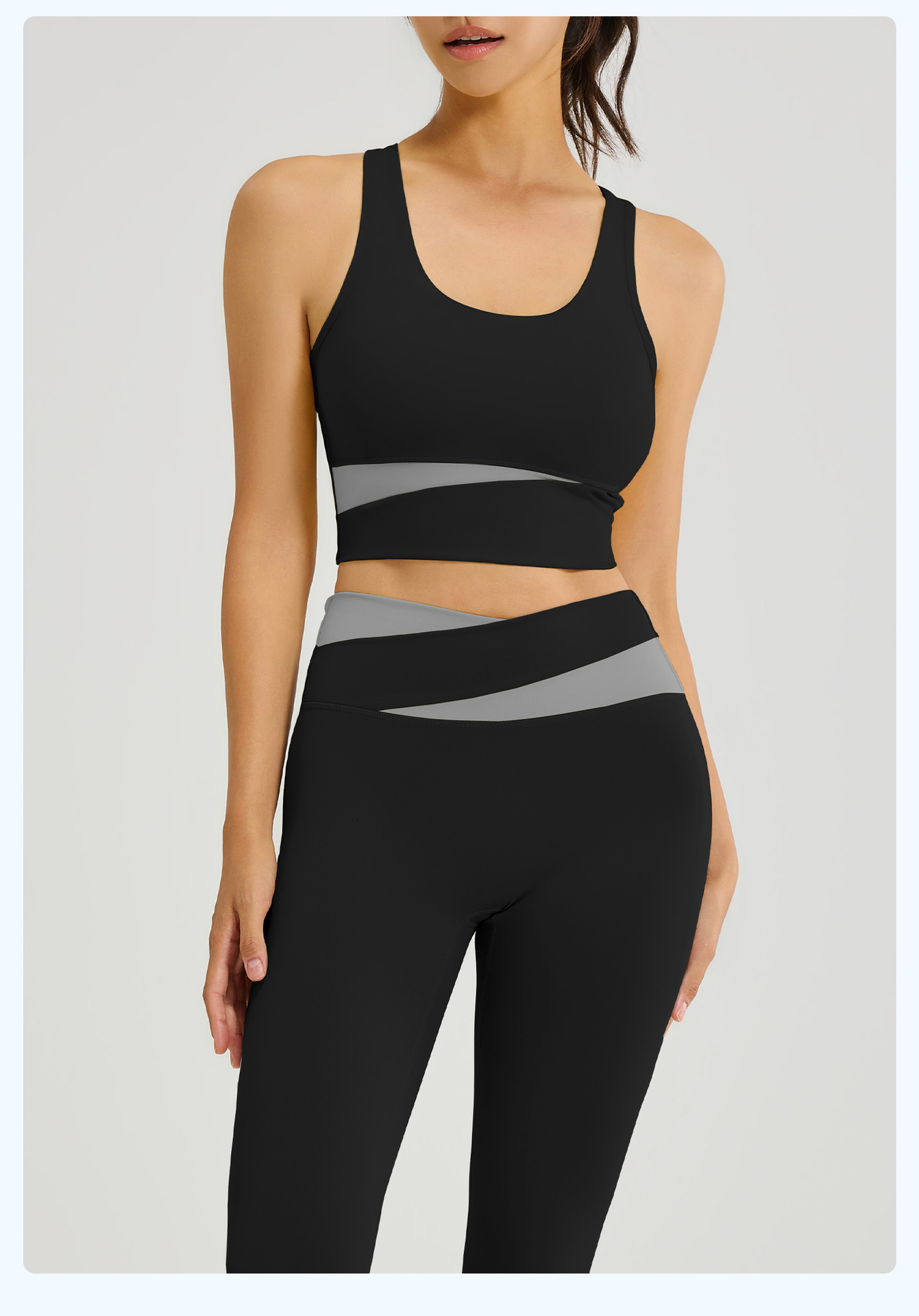 새로운 스티치 대비 컬러 요가 세트 세트 충격 방지 푸시 업 브래지어 스포츠 아름다운 등 하이 웨이스트 크로스 2 색 스포츠 바지