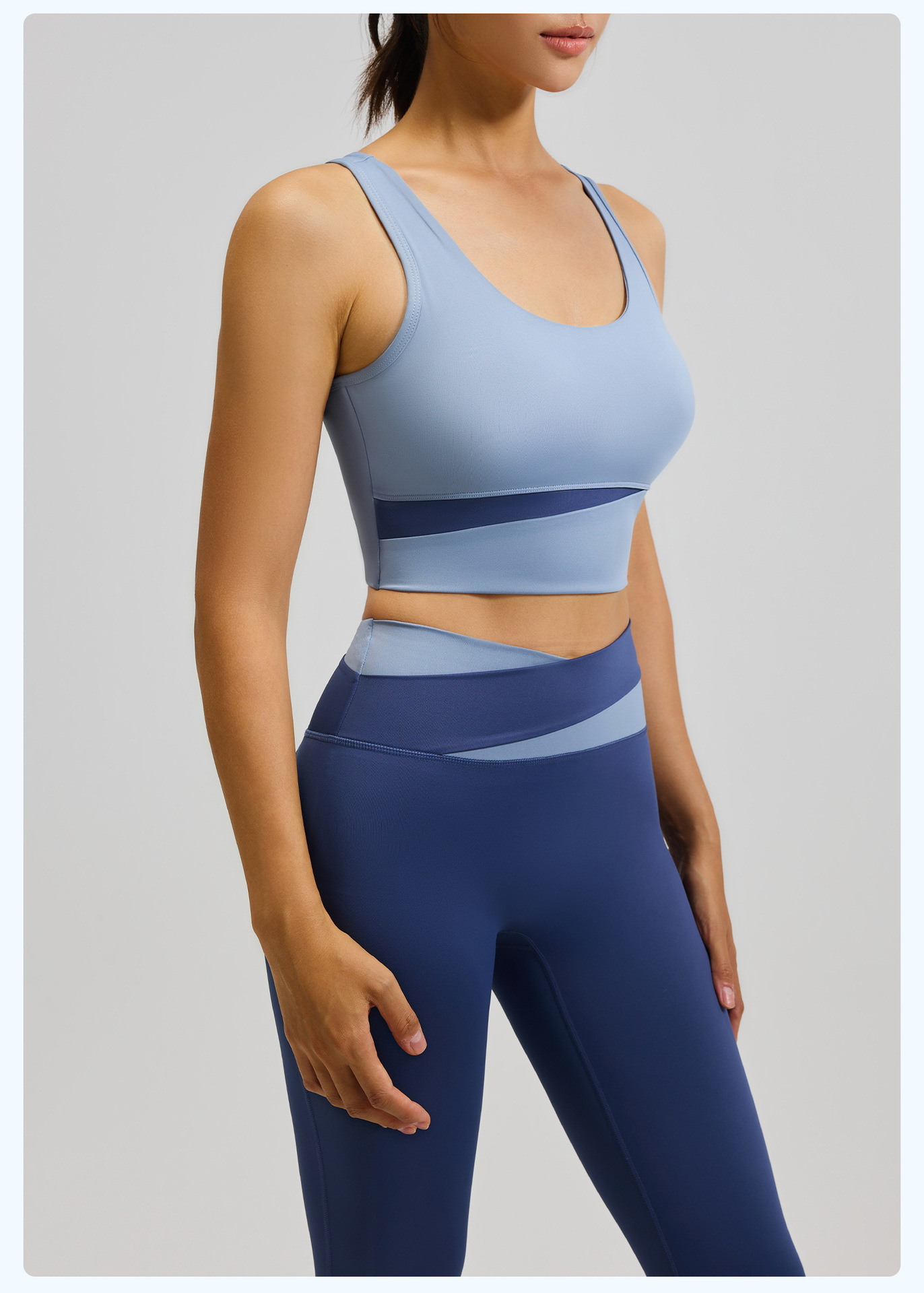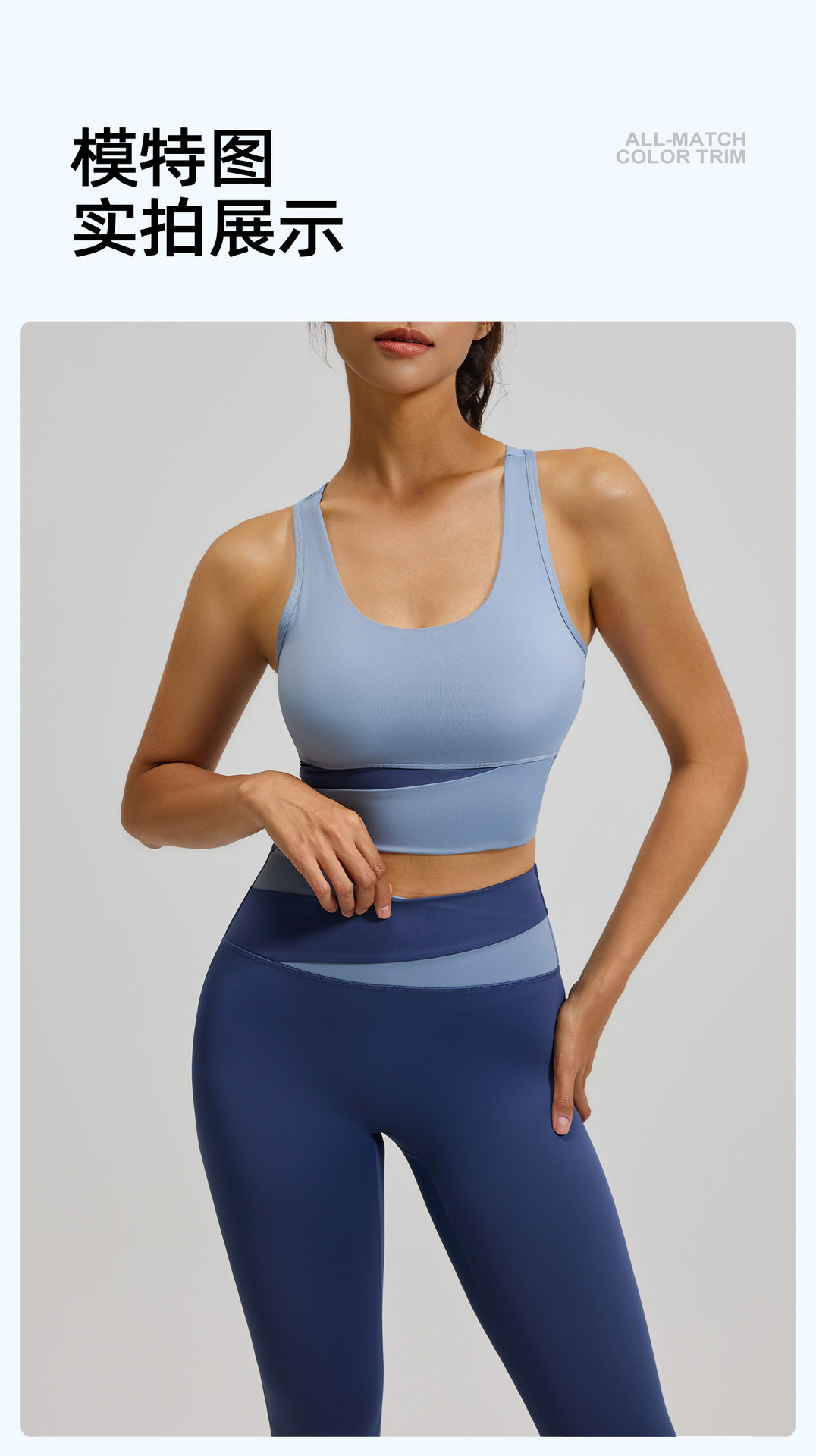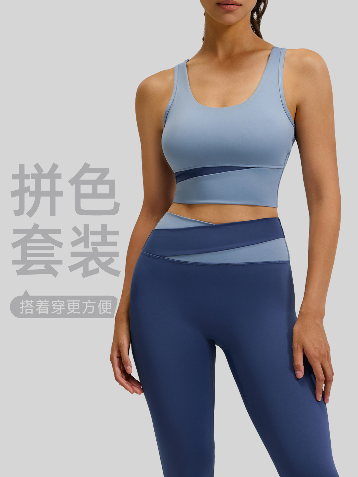 새로운 스티치 대비 컬러 요가 세트 세트 충격 방지 푸시 업 브래지어 스포츠 아름다운 등 하이 웨이스트 크로스 2 색 스포츠 바지스토어 가기