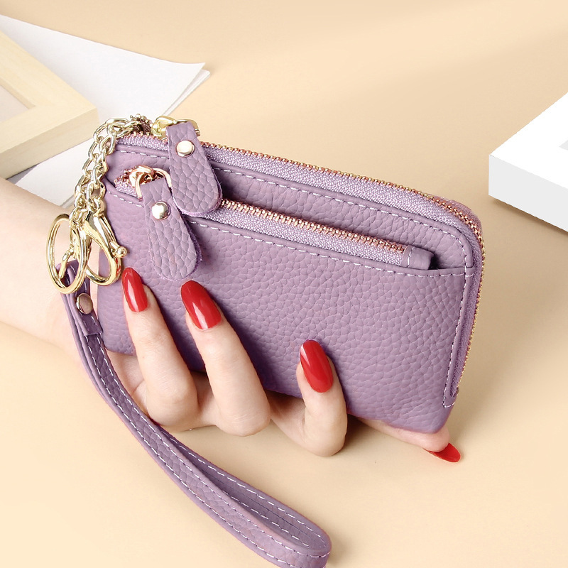 真皮手拿拉链小钱包女头层牛皮简约收纳钥匙扣硬币迷你零钱包批发