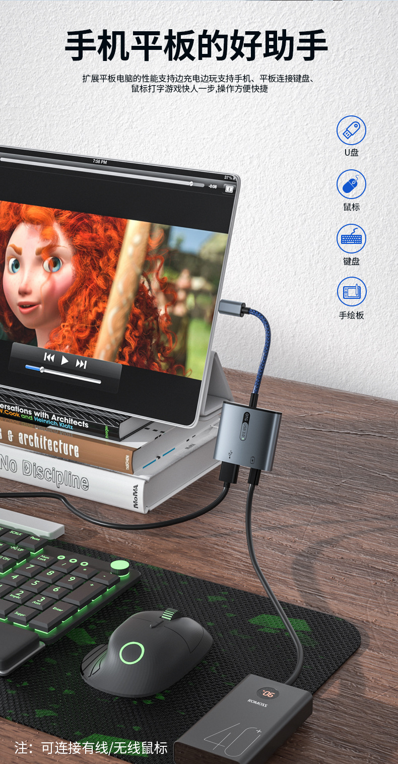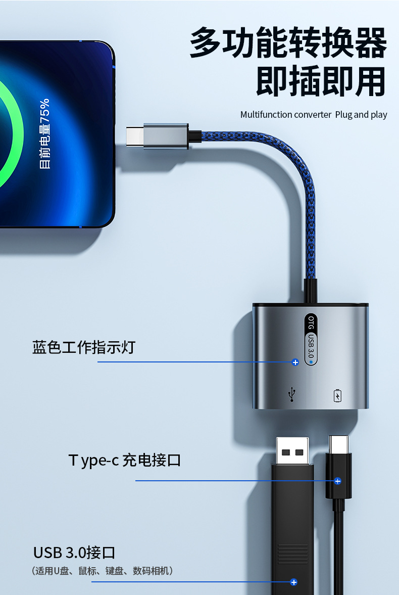 안드로이드 otg 어댑터 유형을 USB 휴대 전화 투인원 충전 otg 어댑터 U 디스크 카메라 어댑터