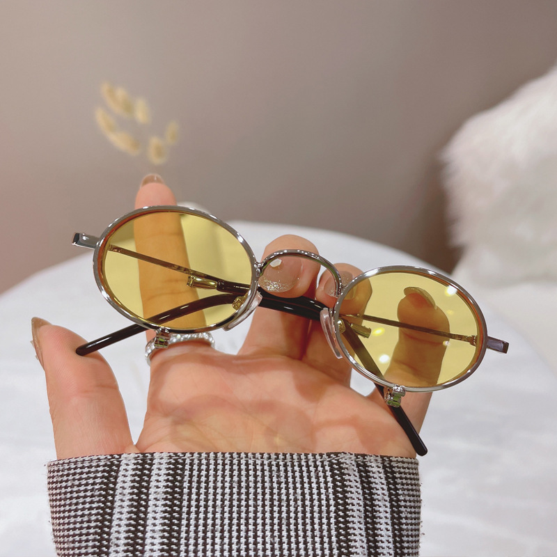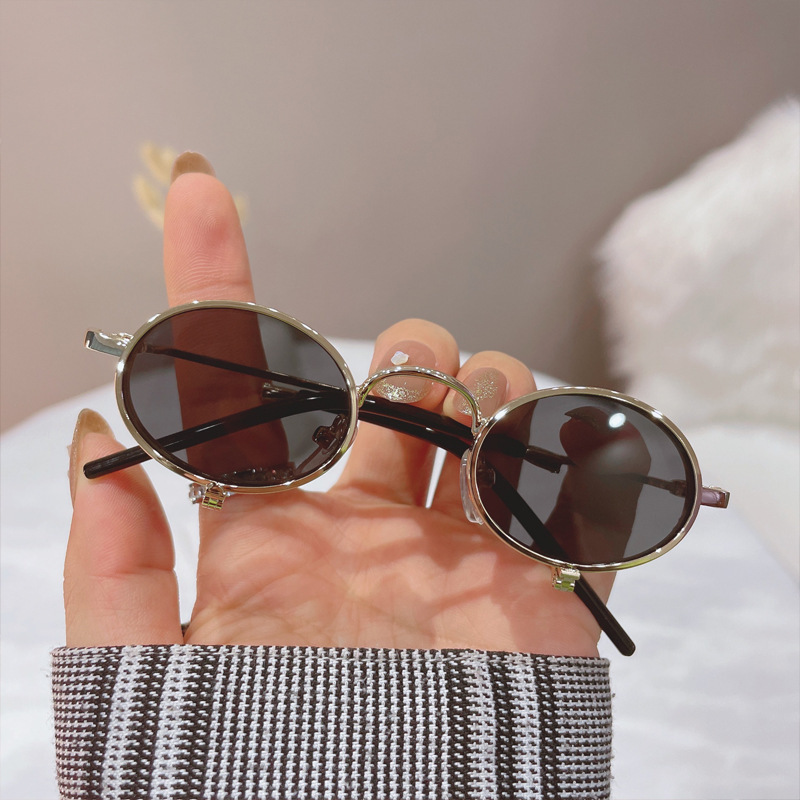 레트로 작은 얼굴 접는 선글라스 재미있는 펑크 스타일 라운드 프레임 스타일 플립 남성과 여성을위한 힙합 오목 스타일 선글라스스토어 가기