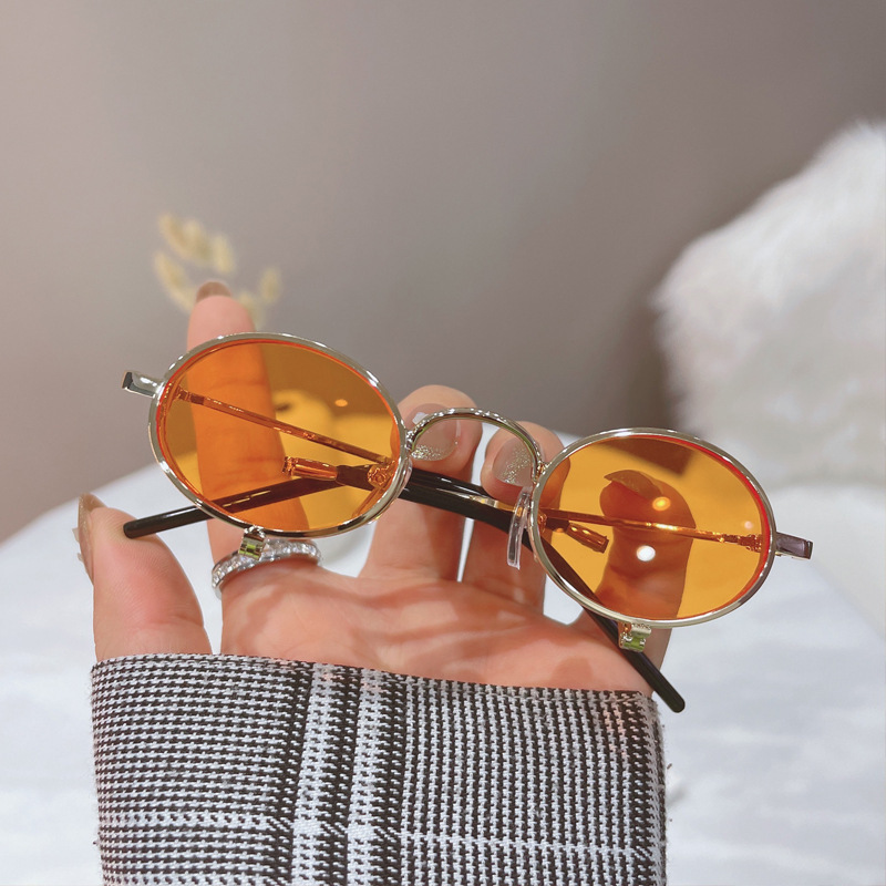复古黑框落日色墨镜女 高级感ins网红橘黄色防晒大脸太阳镜遮阳男