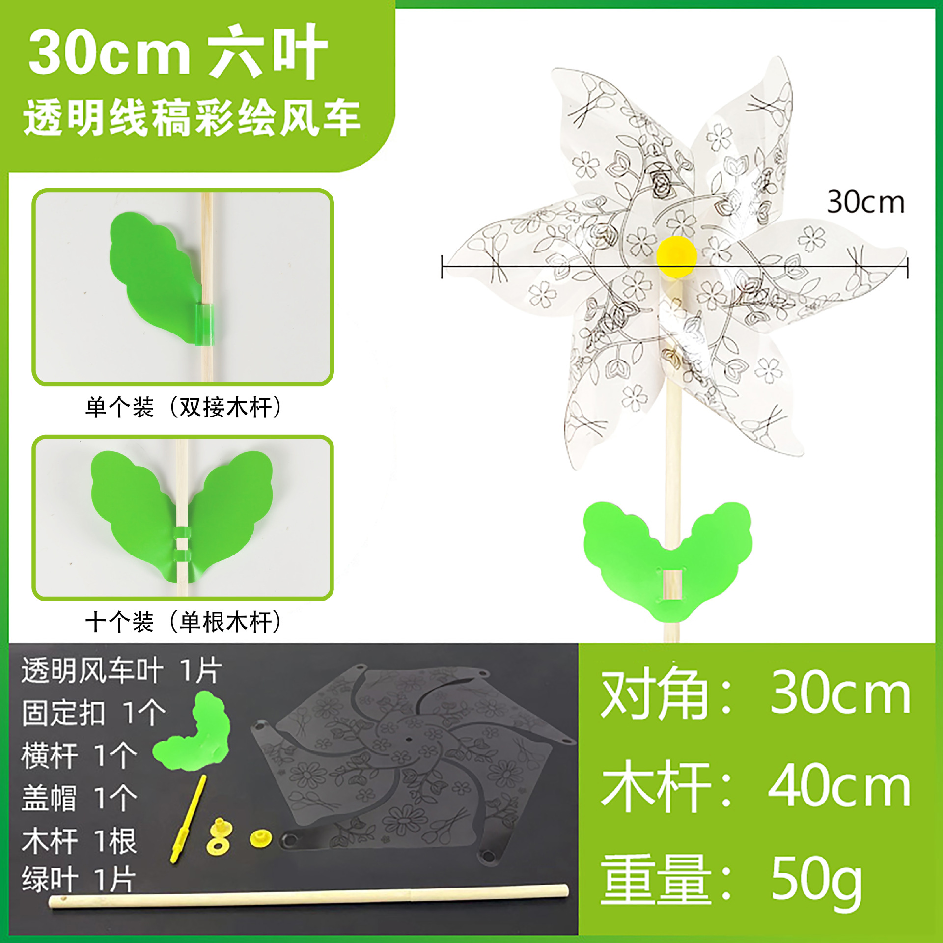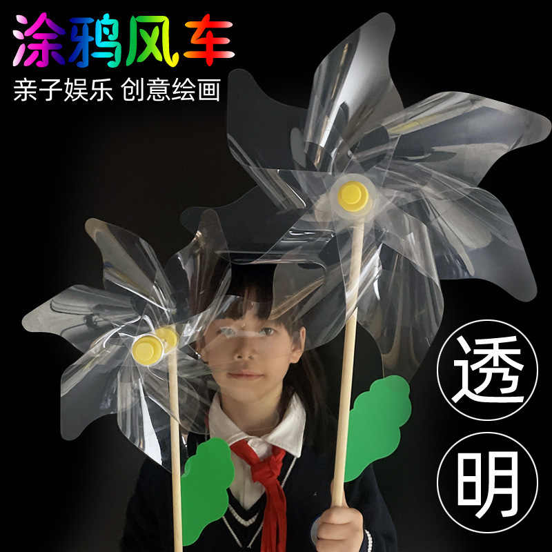 PVC 투명 대형 풍차 그래피티 블랭크 핸드페인팅 DIY 어린이용 그림 따라 그리기 종이 잎 풍차 창의적스토어 가기