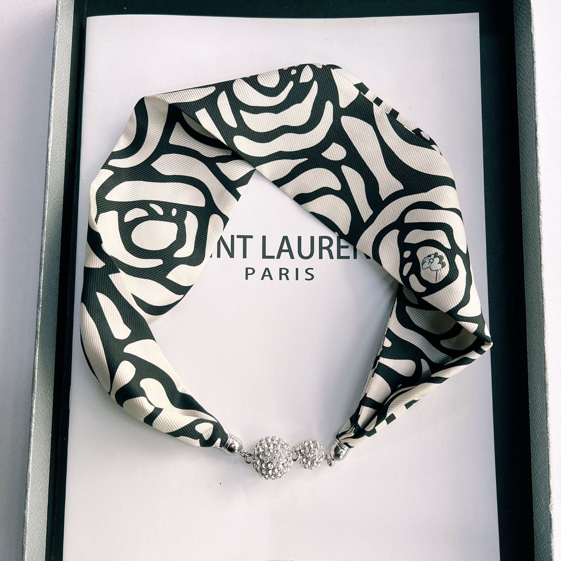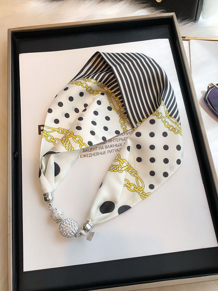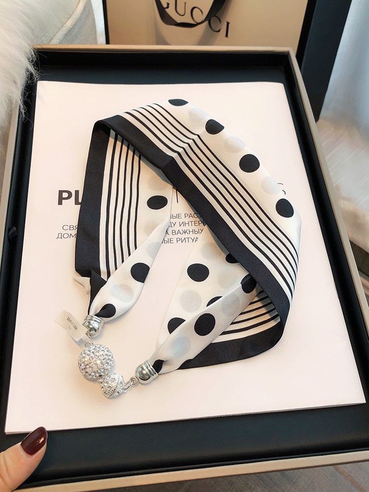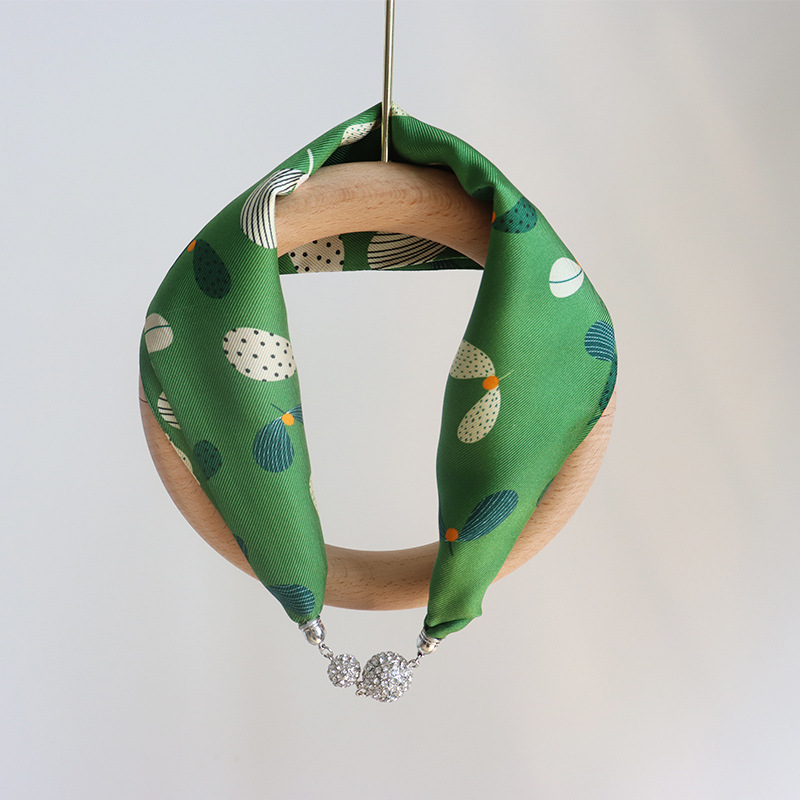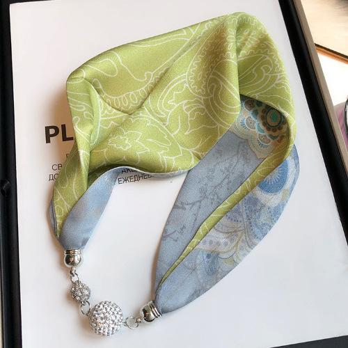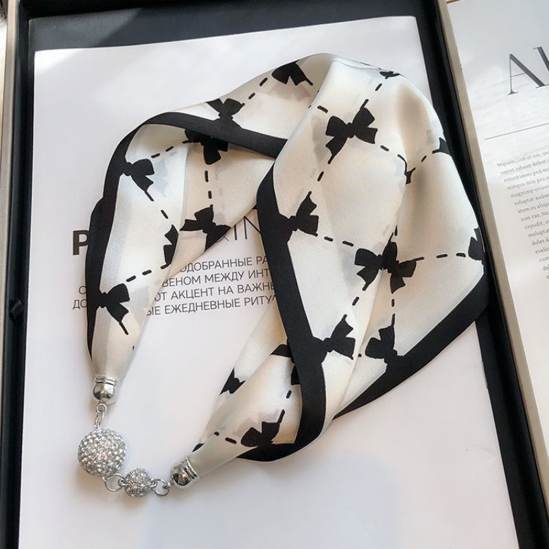 여름 복고풍 마그네틱 버클 작은 긴 자석 뽕나무 실크 스카프 목걸이 다기능 게으른 실크 리본 스카프