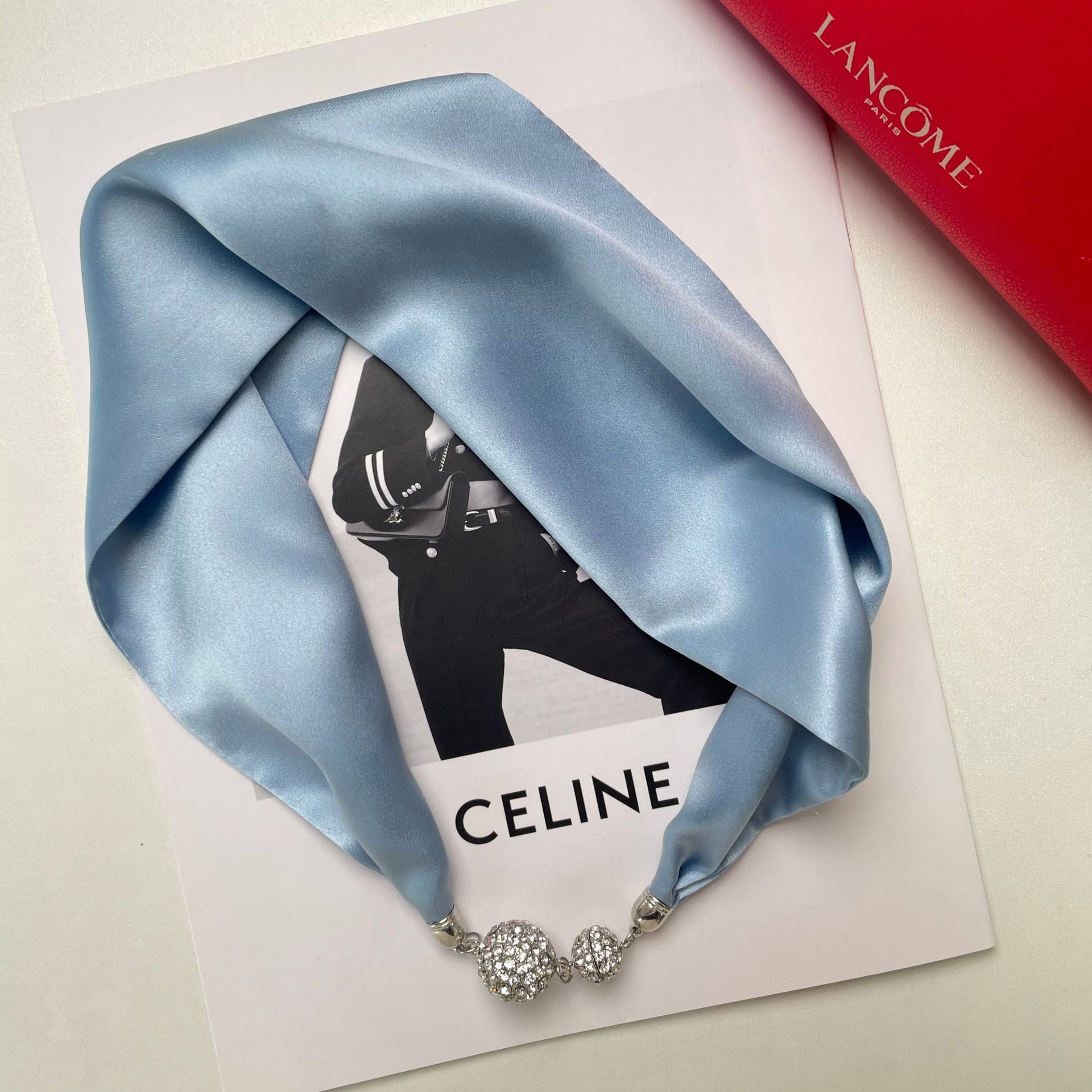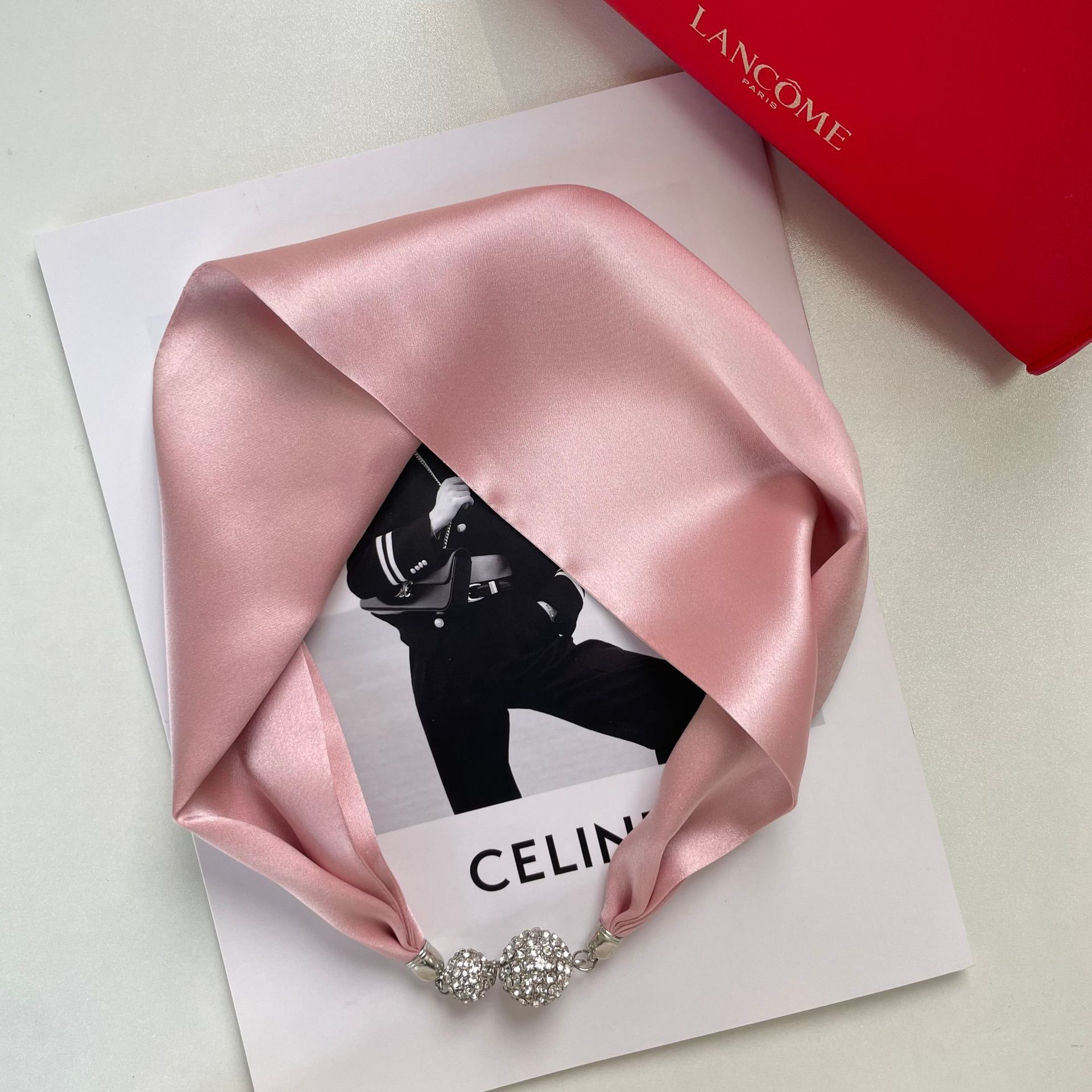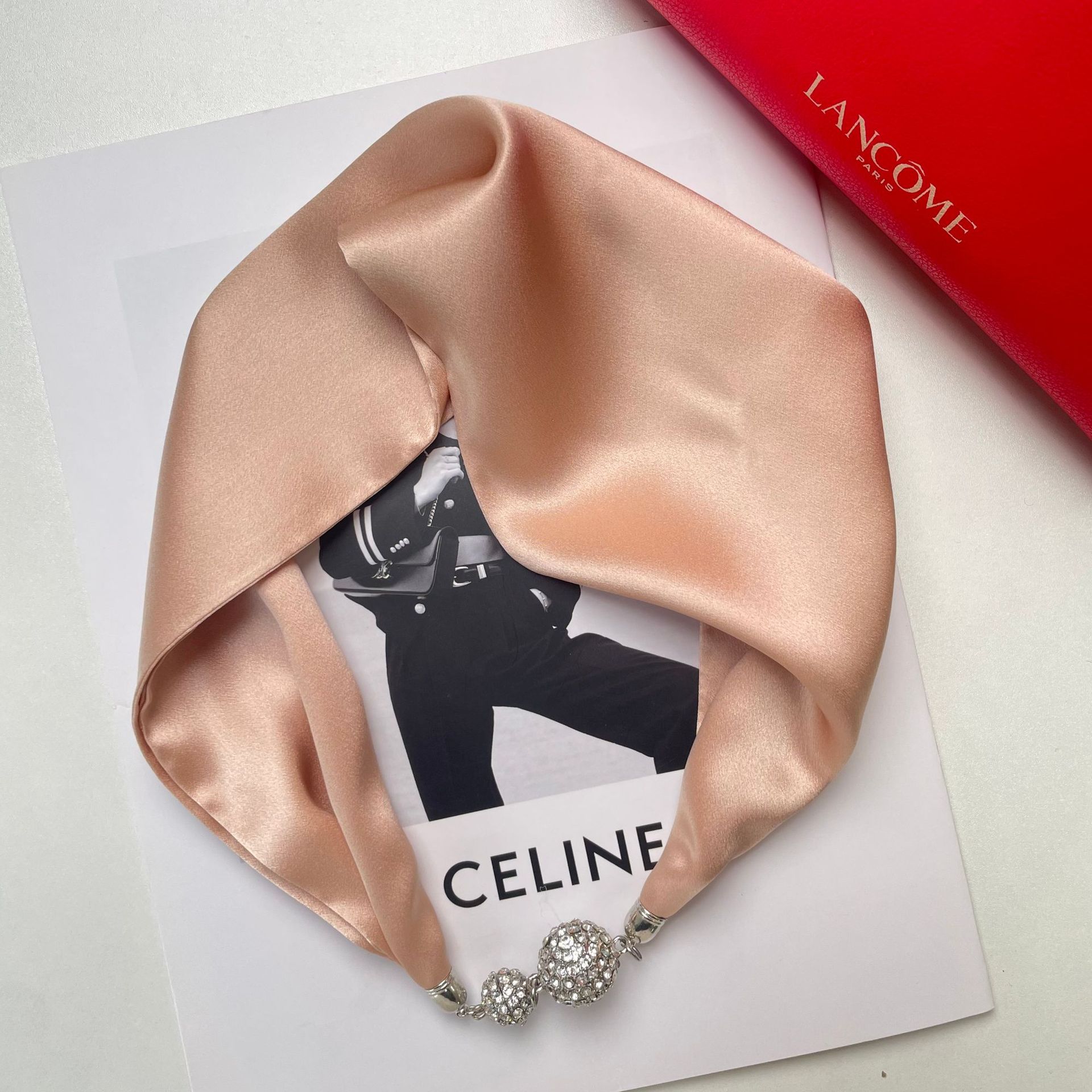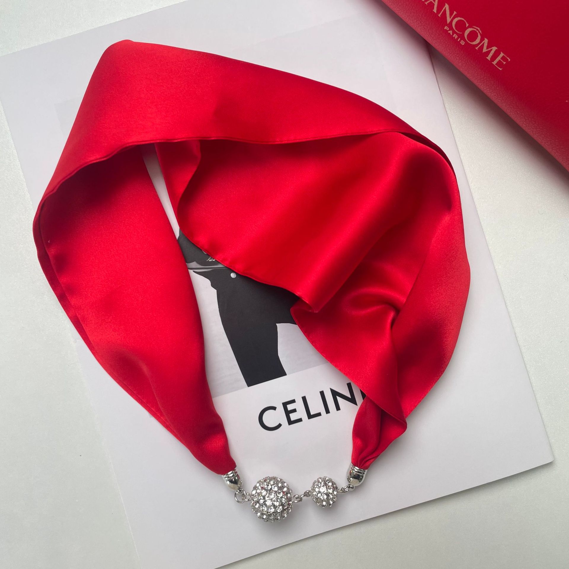 여름 복고풍 마그네틱 버클 작은 긴 자석 뽕나무 실크 스카프 목걸이 다기능 게으른 실크 리본 스카프